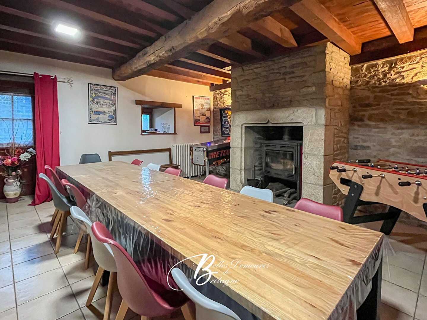 Descriptif : La longère se compose, au rez-de-chaussée, d’un séjour équipé d’un poêle à bois, prolongé par une spacieuse cuisine-salle à manger agrémentée d’une cheminée. Une salle d’eau, des toilettes ainsi qu’une buanderie avec chaufferie complètent ce niveau. À l’étage, vous trouverez cinq chambres, deux salles de bains et des toilettes.