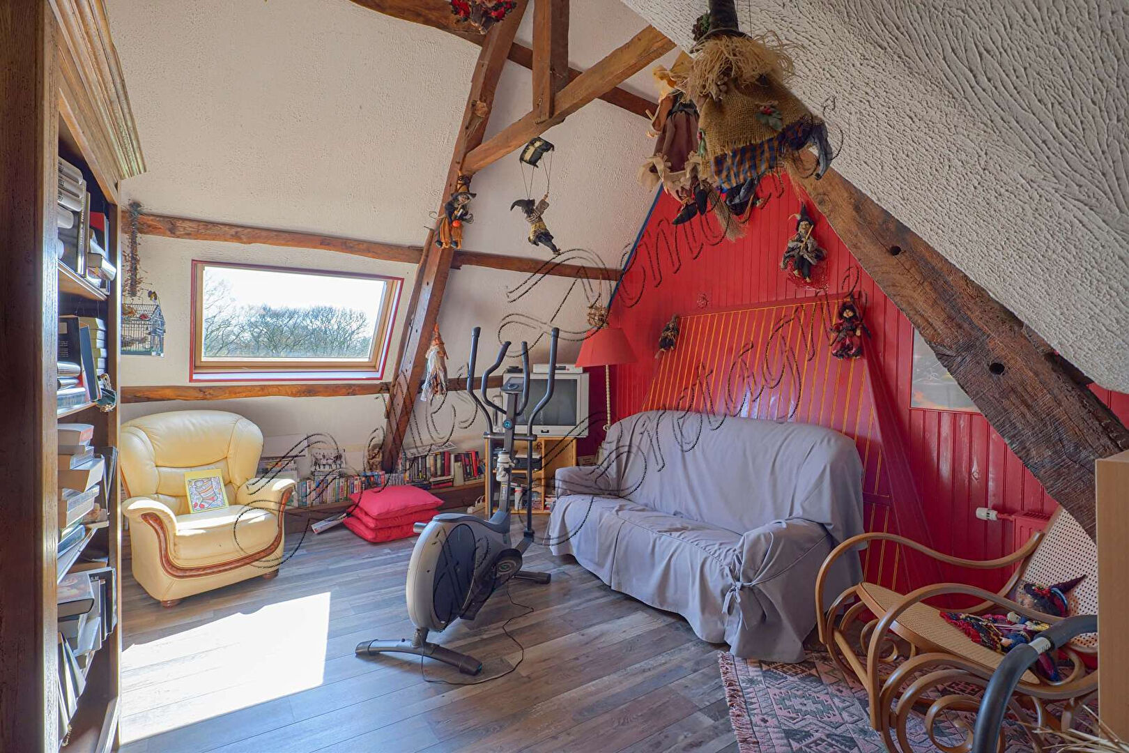 The main access is through the living room of 55 m² with its monumental fireplace and arched doors. The equipped kitchen is on the back as well as toilets.