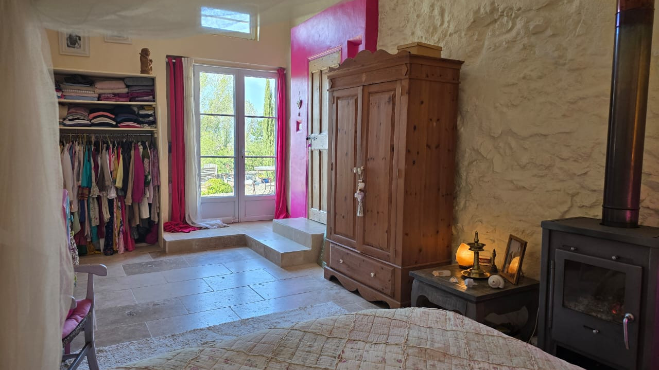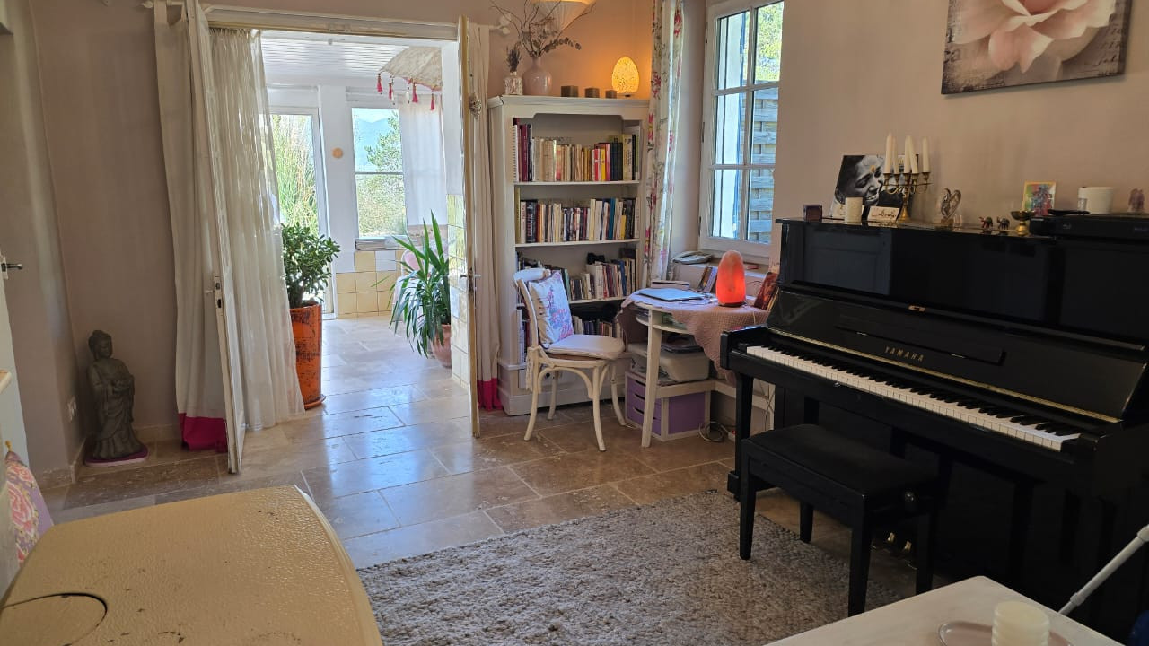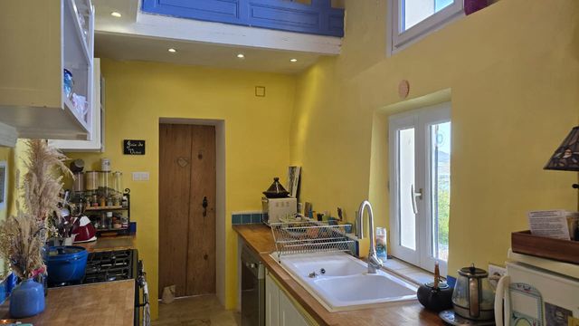 A36223NDL84 - Close to Apt, yet completely private, this characterful 1881 property charms with its authenticity, peaceful setting and stunning panoramic views over the Pays d'Apt. Without overlooking neighbors. A true haven, it opens onto a beautifully landscaped garden with terraces and hidden corners, ideal for relaxation and contemplation. The main house welcomes you through a bright conservatory leading to a cozy living room, a kitchen and a spacious bedroom with shower room, WC and an infrared cabin for moments of well-being. The fully equipped kitchen offers stunning views on the landscape.