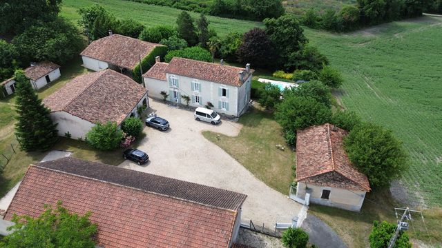 A25950LS16 - This fully furnished manor sits on nearly 8 hectares of private, peaceful land. The main Maison de Maître offers 5–6 bedrooms and a secluded 8x4m heated pool to the rear. Successfully rented during summer, it also includes a detached single-storey 1-bedroom gîte with kitchen, lounge (potential 2nd bedroom), and shower room—ideal for guests or rental. Several large outbuildings offer excellent potential for conversion into further gîtes or equestrian facilities. A 1-hectare lake adds to the charm of the estate. Located just 10km from the stunning village of Aubeterre-sur-Dronne, on the Charente/Dordogne border—this is a rare opportunity.