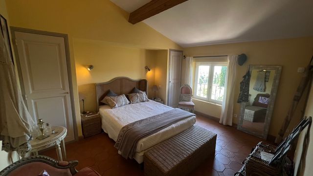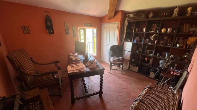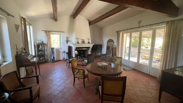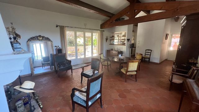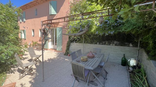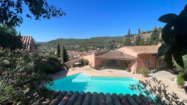A39547GWI83 - Lovely house in the village of Cotignac with 2,245m² of gardens, swimming pool and large garage. The village is on your doorstep! The property is beautifully presented and has a total of 3 bedrooms, spacious living room / dining room, kitchen, 2 bathrooms and W.C. further kitchen and living room. In a private location with fabulous views overlooking the village and the Provencal landscape.