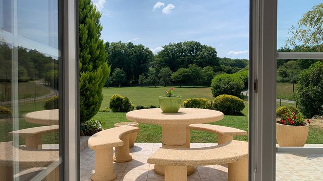 Up near the woods, blending into nature, about 50 meters from the house, with its own access road, an 80m2 hangar with 3.50-high sliding gate is ideal for motorhomes, boats, fodder storage or a workbench. This includes electricity and water (sink).There are also four water points in the house with softeners (+ one in the hangar).
