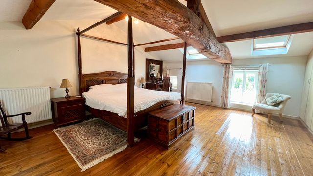 The house features 5 bedrooms, a brand-new fitted kitchen, a large light-filled living room, a dining room, 2 bathrooms, and 2 en suite shower rooms. Outside, it boasts a huge barn, garage, car port, extensive gardens, and its own private woodland—perfect for outdoor living or further development.
