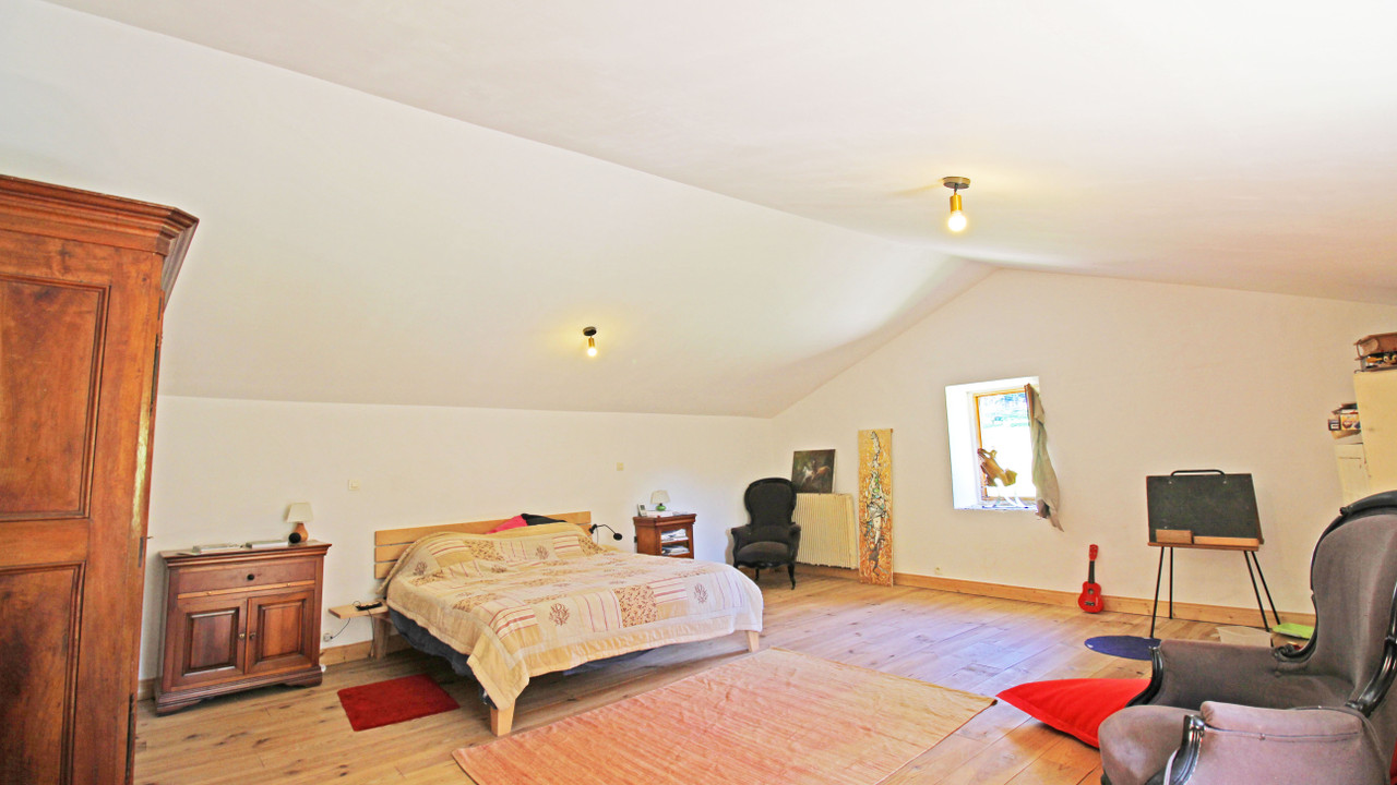 A32406NE11 - Nestled on the south side of the Black Mountains this beautiful property offers multiple possibilities for establishing a business in the South-West of France or a large family home. The main house is built with gorgeous traditional stone and offers four good-sized bedrooms as well as an open downstairs living and dining room. Beyond the main house the property shows its true potential with a large second house offering a commercial kitchen and reception area downstairs and upstairs dormitory. There are three stone stables and a separate building with mezzanine that has permission to convert into a gîte. Over 8 hectares of land surround the property and includes a bread oven, a toilet block ideal for a campsite, a large agricultural hanger and plenty of fields and woods to explore or use for horses or other animals. The possibilities are endless, come and discover this gem for yourself.
