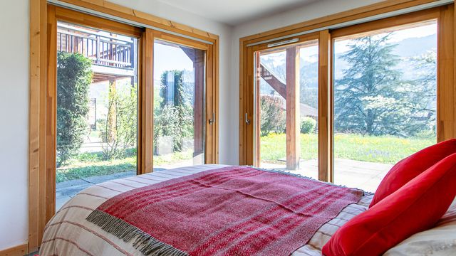 Bright and spacious 3-bedroom ground-floor apartment with large private garden and views over Samoën