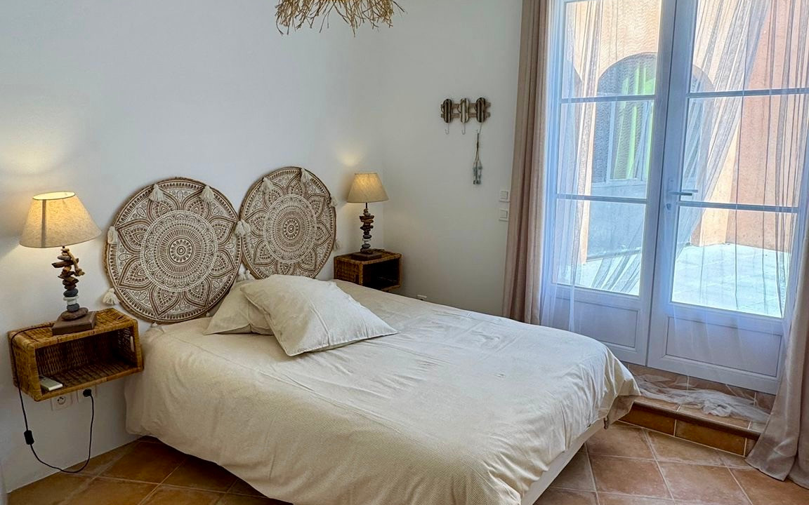 A41081JD83 - Beautifully maintained Provençal-style home of featuring 3 bedrooms including a master suite, a stunning cathedral-ceiling living room with fireplace, fully equipped kitchen, patio, double garage, and pool. Set in a peaceful environment, with large garden and pool /pool house ,yet close to most amenities combining comfort, elegance, and authentic charm