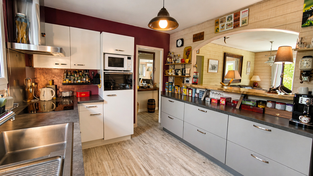 A44414EPR33 - Discover this beautifully maintained home, set in a sought-after area of Le Teich, offering a peaceful living environment. It comprises four bedrooms, a bright living room with an simi open-plan kitchen, a shower room, and a WC.
