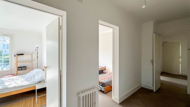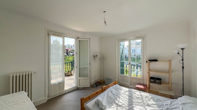 The entrance leads to a corridor serving two adjoining bedrooms of 10 and 14 sqm, both opening onto a long balcony with stunning sea and Fort Socoa views. The kitchen awaits your own design. Two further 13 sqm bedrooms open onto a light-filled veranda and a second balcony.