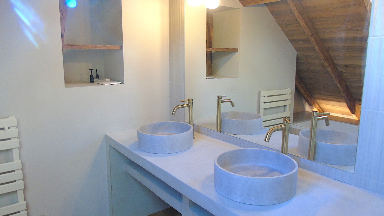 Set on the top 2 floors of a lovely old village house the apartment enjoys private parking and there are communal gardens.