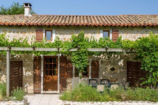 A40148DCO79 - This stunning property offers six lodgings, all stone and full of character, with woodburning stoves, so winter lettings are possible too. The main house and one of the gites offer four bedrooms and four bathrooms, there is a cosy one bedroom, one bathroom ground floor appartment, a two bedroom, one bathroom gite, and two three bedroom, one bathroom gites. Outside there is a pool to the public area and a private pool should you wish to continue using the property as is. A childrens play area, a bike store and laundry room as well as a games room complete this sale.