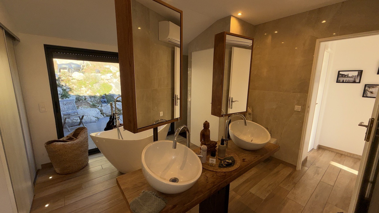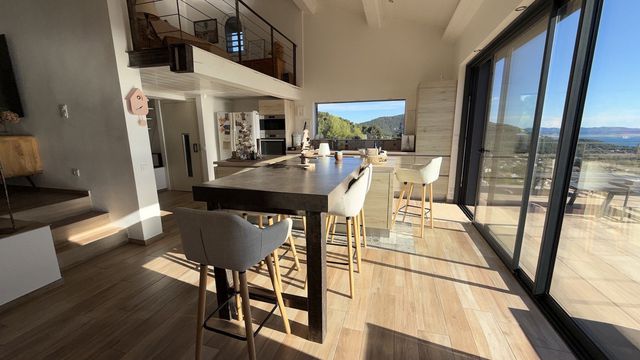 A41649EOB83 - Let yourself be captivated by this exceptional house located in Carqueiranne, where every sunrise and sunset is a work of art. Overlooking the bay, it is a true gem offering a unique and breathtaking panoramic sea view of the neighboring islands of Porquerolles, Port Cros, Gien, the Hyères salt marshes… A constant spectacle that invites serenity and reverie.