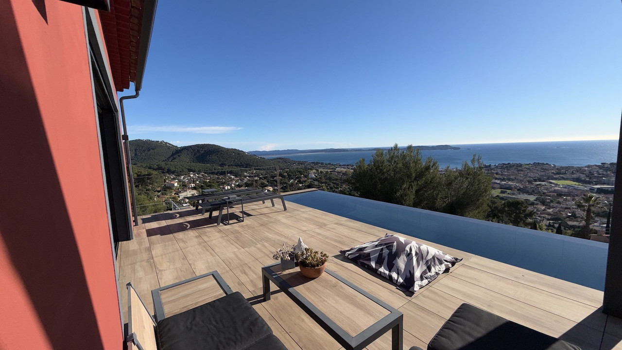Detached house of 162m² on a plot of 1290m², panoramic sea view, swimming pool, Carqueiranne