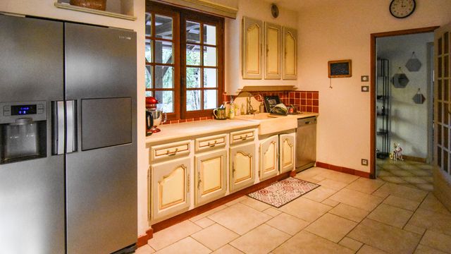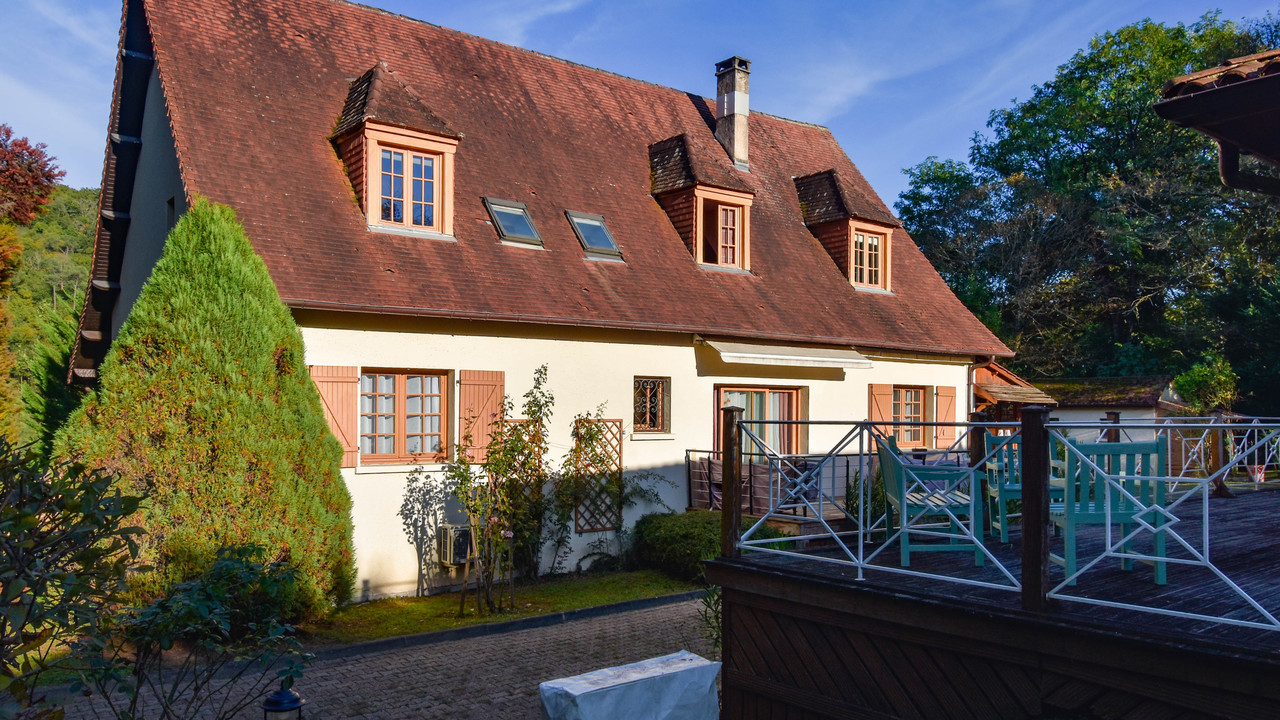 A40187LBC24 - Beautiful property on large wooded and enclosed grounds of 5097m2, comprising a house of 272m2 with large living/dining room of 38m2 with fireplace, separate kitchen, furnished, 5 bedrooms, 3 shower rooms and a bathroom, 4wc, billiard room, basement with gym, laundry room, garage.