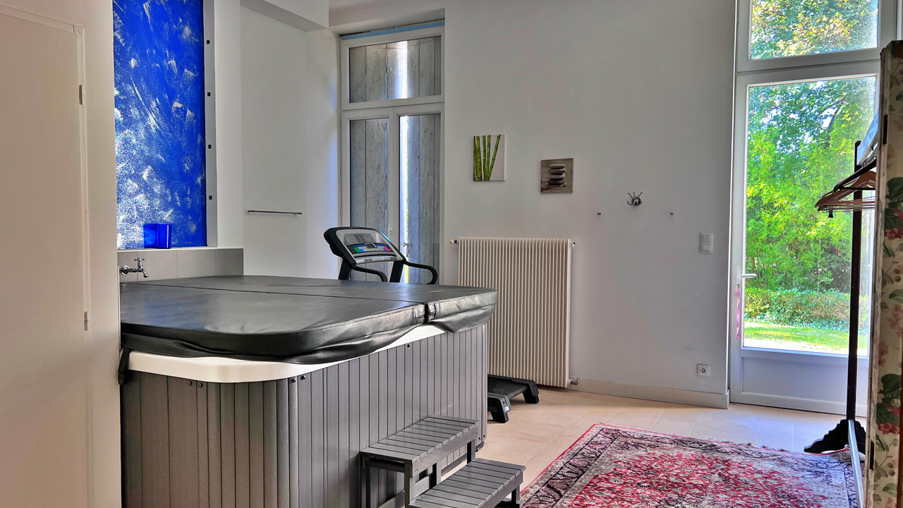 The estate comprises 17 bedrooms and 14 bathrooms across the château and three outbuildings, plus a caretaker's lodge, making it perfectly suited as a private residence, hospitality venue, or events estate. Elegant reception rooms with large windows and fine period features create a warm and welcoming atmosphere. Additional amenities include a wellness centre, a heated 6 × 12 m pool, and mature landscaped grounds.