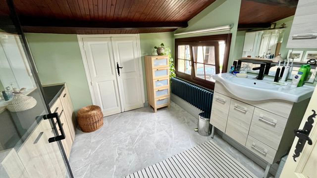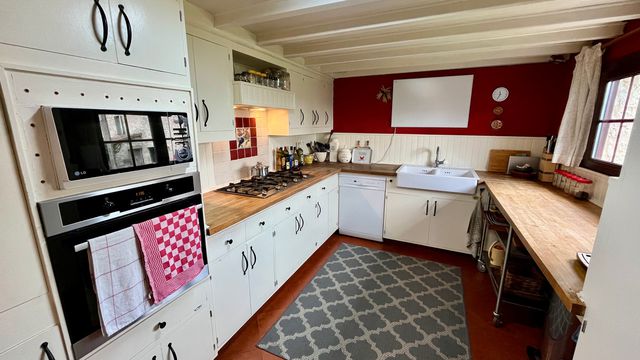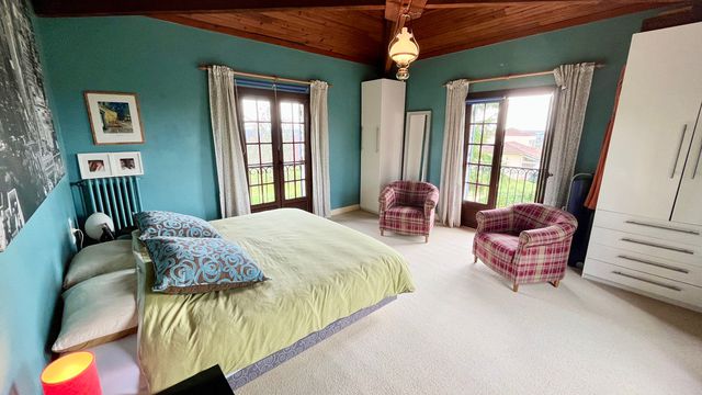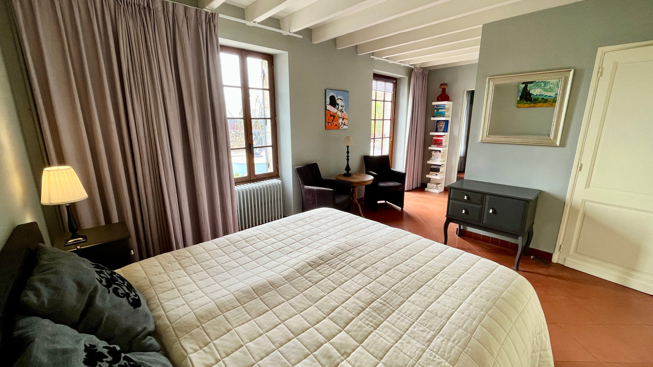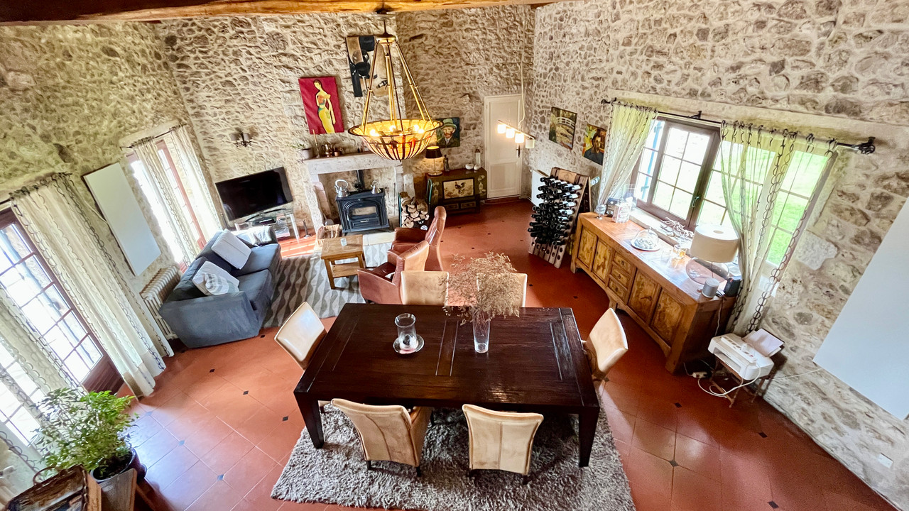 Lovingly maintained, it is set over 2 floors & boasts a wonderfully spacious living room with a cathedral ceiling, wood burner & French doors leading directly out to the terrace & pool. From here, you can admire the outstanding views of the countryside & the Chateau at Duras.