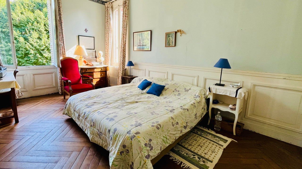 Formerly part of the Château d'Aguesseau estate, the 419 m² property boasts 12 bedrooms across two elegant stone wings and a stately central brick pavilion.