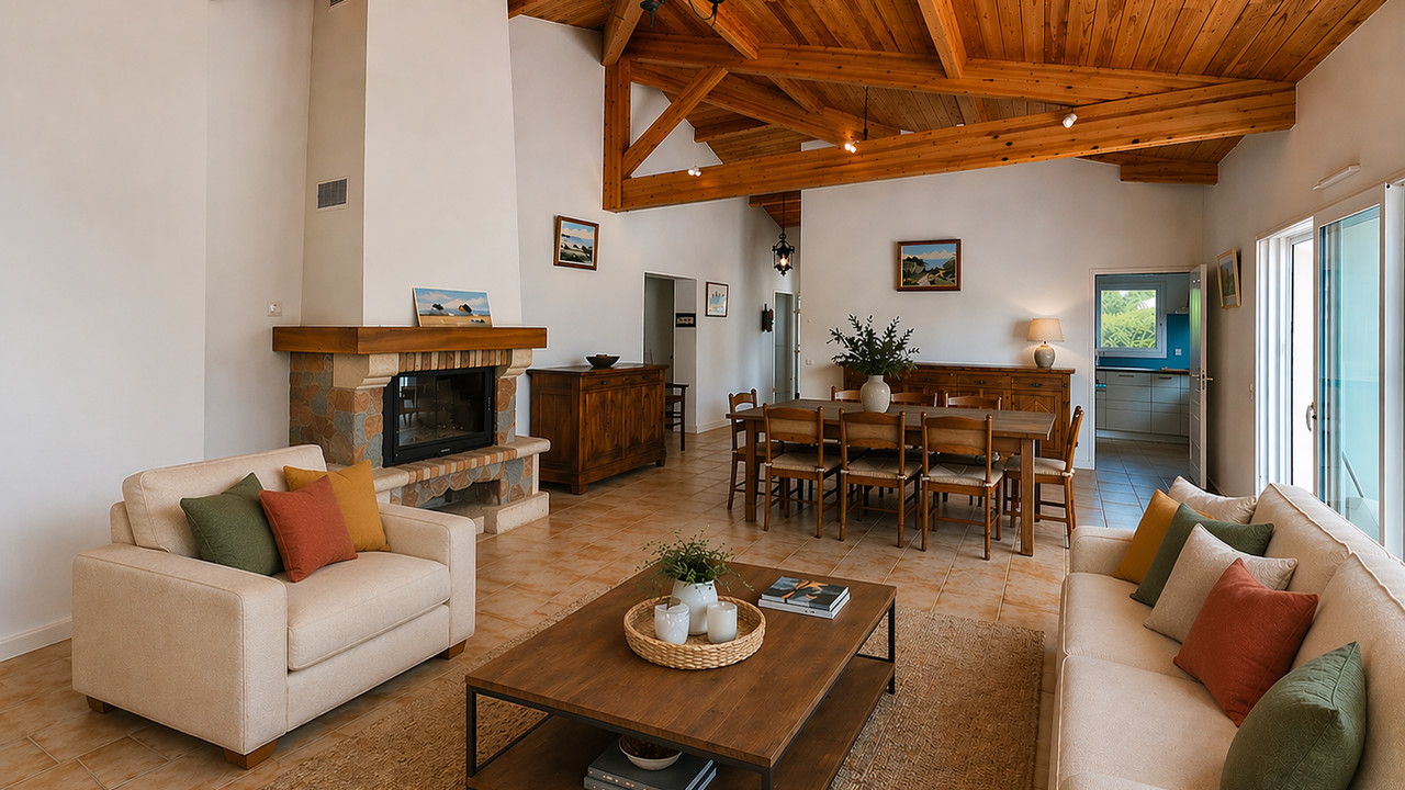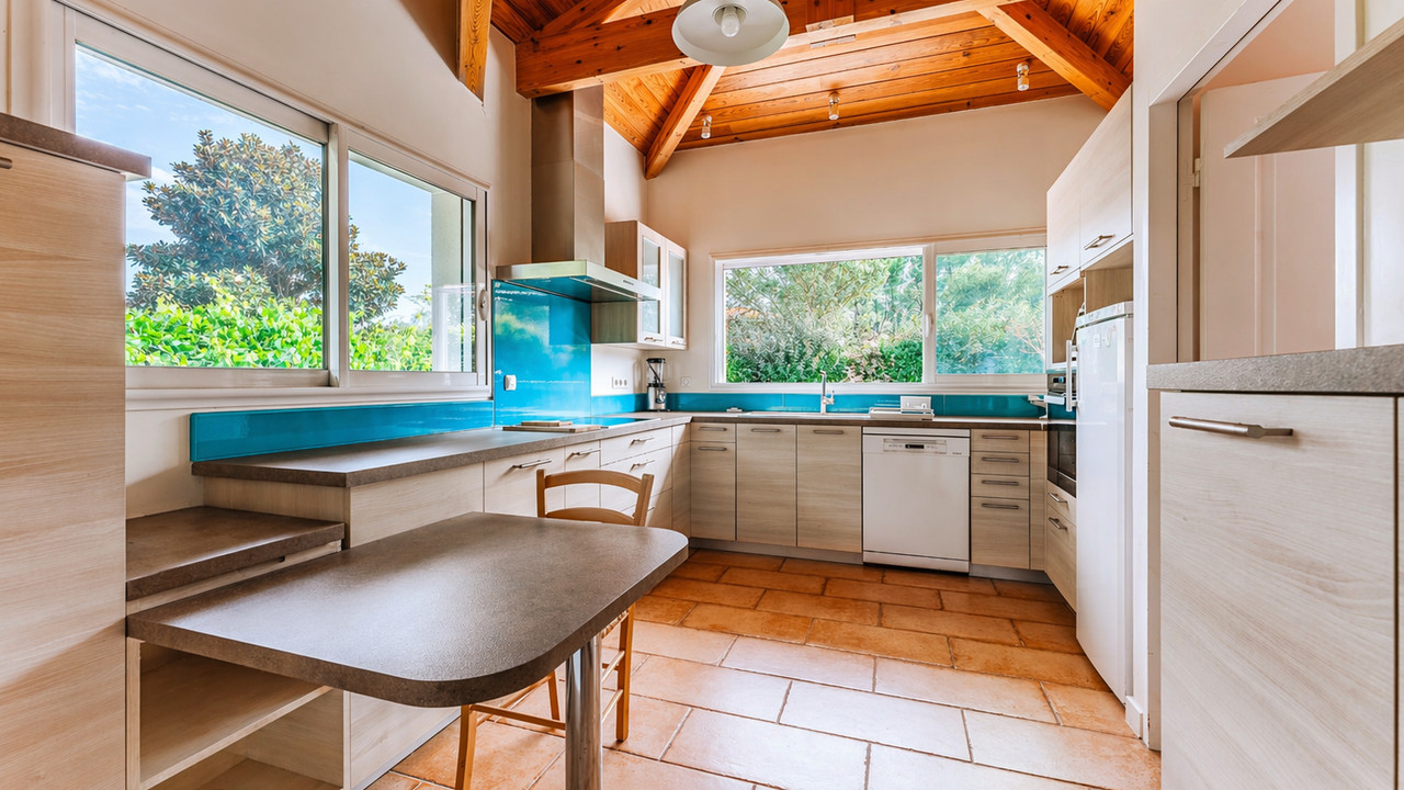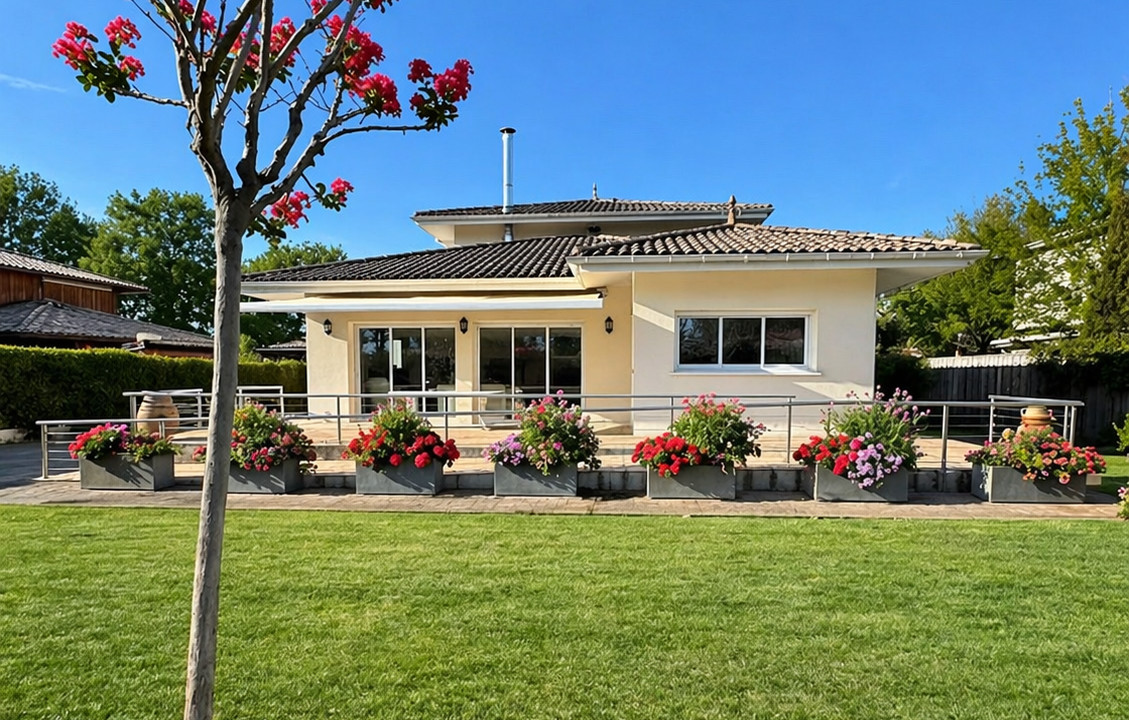 A44457EPR33 - This architect-designed villa, built in 2015 located in a calm residential area, offers 170 m² of living space with a total of six bedrooms three of which are on the ground floor which is also fully accessible to people with reduced mobility.