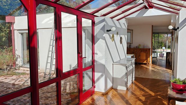 The 180 sqm house is filled with natural light through large floor-to-ceiling windows, framing the landscape like living art. Living areas include an open-plan kitchen with small dining area, a large family dining room, a bright living room, and a reading lounge with large fireplace insert. The property has five bedrooms, including a master suite with private shower, plus a bathroom with bathtub, shower, and 2-person sauna. An 8 x 4 m pool with terrace, garage, laundry, and cellar complete this rare home — ideal as a main or second residence for golf and nature enthusiasts.