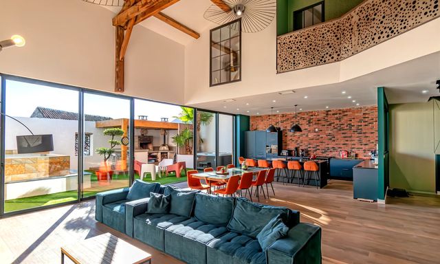 A41177CYV11 - In a quiet one-way street in Coursan, this former wine warehouse has been transformed into a stunning 350 m² contemporary home with garage, terrace, pool, and style in every detail. Renovated between 2021 and 2024, it combines industrial heritage with refined design. The 75 m² living area opens onto a 100 m² terrace with heated saltwater overflow pool, jacuzzi, and outdoor kitchen. Four bedrooms including a master suite, a wine cellar, utility room and a vast 150 m² garage complete this unique property. Coursan offers full amenities and is just 10 min from Narbonne and 25 min from the Mediterranean beaches. Perfect for design lovers, families, remote professionals, couples who enjoy entertaining — an exceptional main or secondary residence in the South of France.