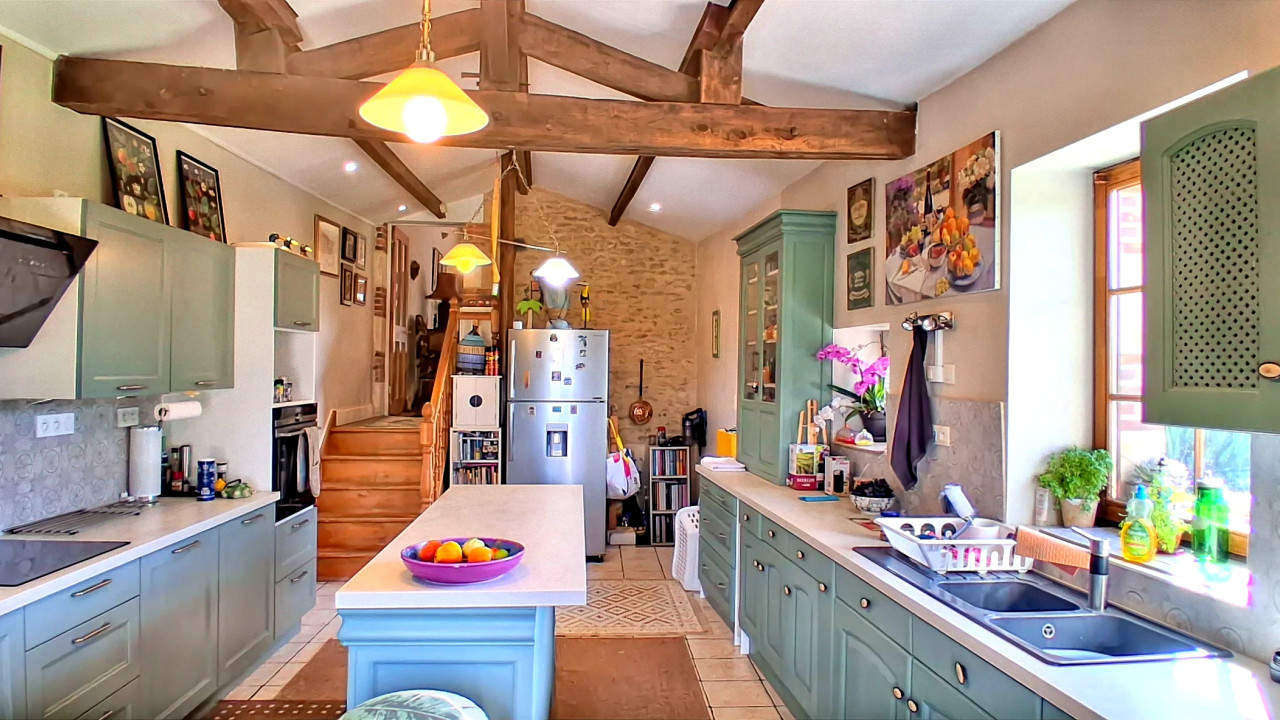 A39950DOW85 - Dating from the 19th century, this unique historic residence sits in the heart of the medieval village of Bazoges-en-Pareds and enjoys a rich and colourful past. Over the years it has served as a village theatre, school and meeting hall, playing an important role in local life. Today, the property is arranged as a welcoming family home with potential to operate as a bed and breakfast, ideal for large or multi-generational living.