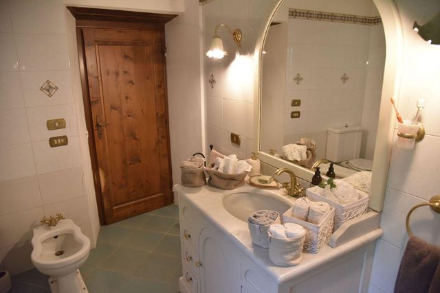 Die zweite Etage besteht aus einem Wohnzimmer mit einem neoklassizistischen Kamin aus weißem Carrara-Marmor, einem Hauptschlafzimmer mit Bad und Abstellraum, einem Doppelzimmer mit Fresken, einem großen Badezimmer, einem Schlafzimmer mit Fresken und eigenem Bad und einem kleinen Gästezimmer/Arbeitszimmer .