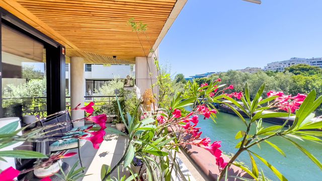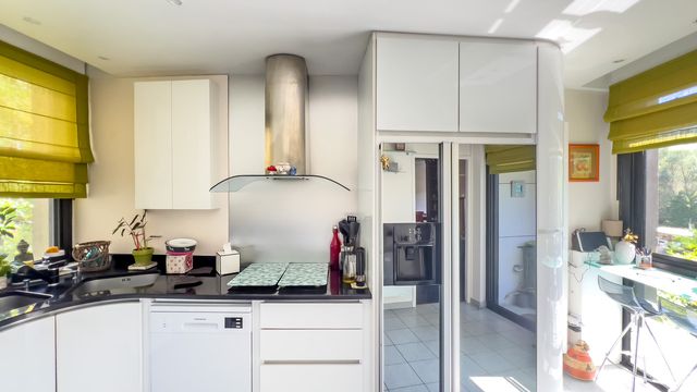 Comprising: a lovely sunny living room (41m2) with 13m of full-height picture windows opening onto the terrace, on the wooded promenade side, perfect for an aperitif al-fresco or dinner with friends, a fully-equipped kitchen, a WC + utility corner, 2 bedrooms (3rd bedroom possible), a bathroom with WC and a shower room.