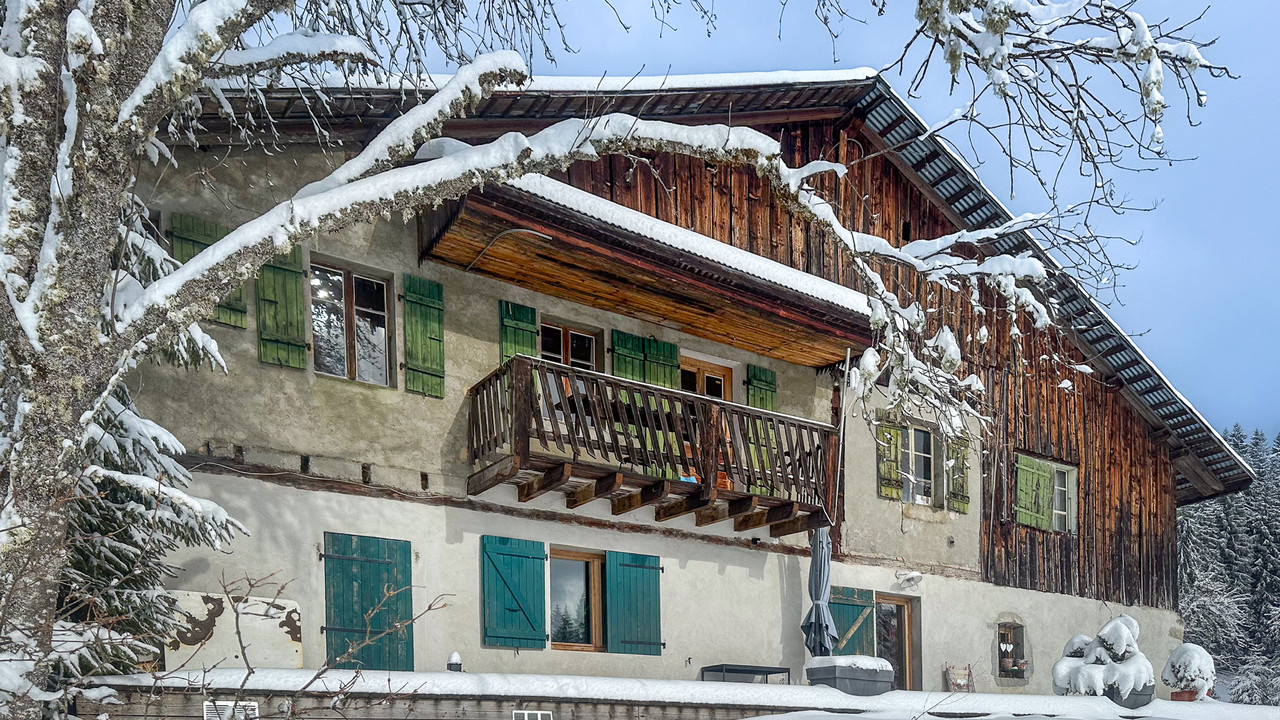 A44029JST74 - This fabulous traditional Savoyard farmhouse, with lots of land, is located at 1,150 m altitude in a peaceful, private location with stunning views of the Aravis mountains.