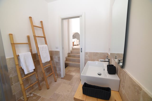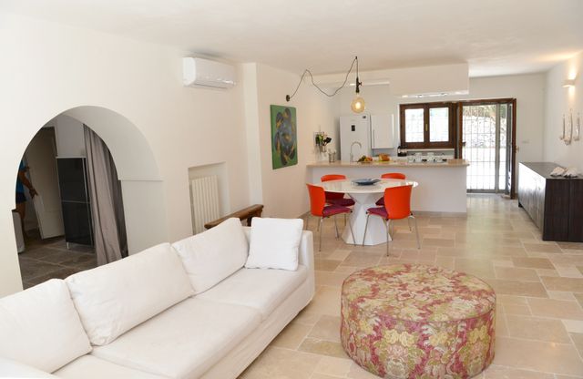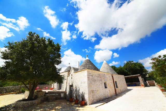 695.000 € ID: 158643Zu verkaufen in der Landschaft von Ostuni, ein wunderschöner Trulli-Komplex mit Erweiterung, der auf originelle und natürliche Weise fein restauriert wurde. Das Anwesen ist auf zwei Ebenen aufgeteilt. Der Trulli-Teil besteht aus einem großen Wohnbereich mit Kamin, offener Küche, Ruhebereich, drei Schlafzimmern und zwei Bädern.