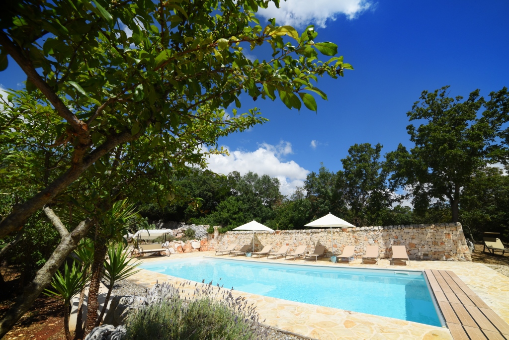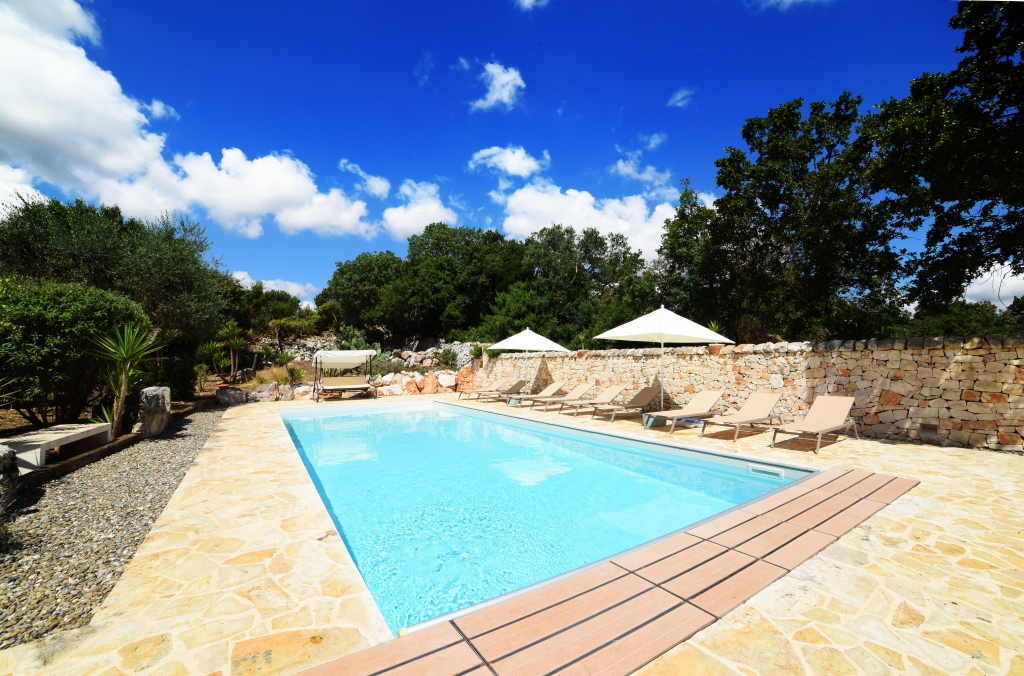 Das Land ist ca. 5.000 Quadratmeter groß und wird mit einigen Olivenbäumen, Ackerland, mediterraner Macchia und Hainen bewirtschaftet. Der Pool ist wunderbar, eingebettet in absolute Privatsphäre und Natur.