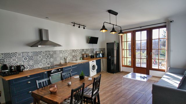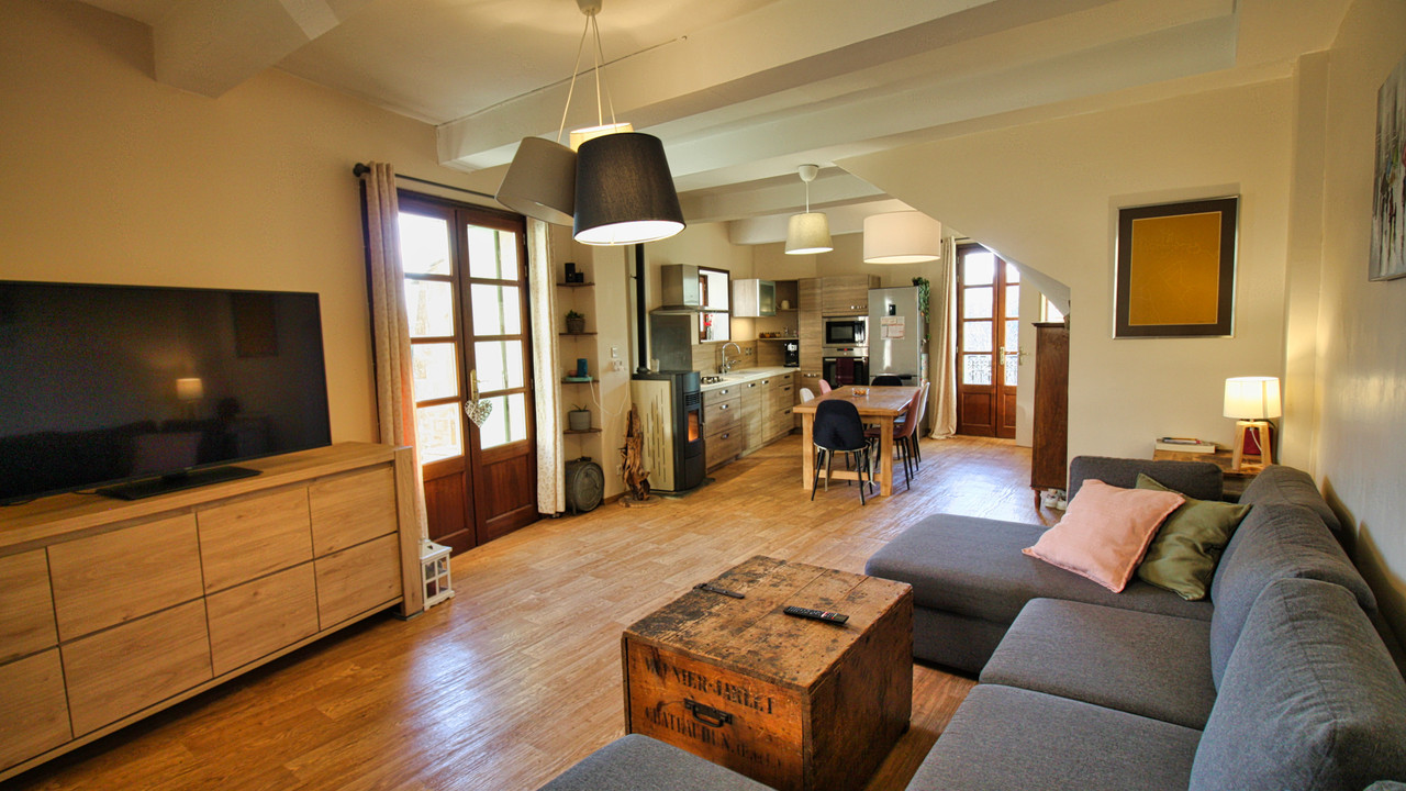 A42350RAB34 - Situated in the highly sought-after commune of Saint-Privat, just 15kms from the town of Lodève, this rare opportunity comprises two beautiful traditional stone properties located in adjoining villages, currently run as a comfortable main residence with two independent gîtes. The whole is presented to an excellent standard, blending contemporary comfort with the original charm and character of these village homes.