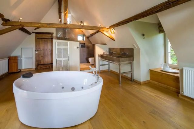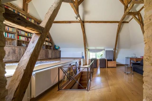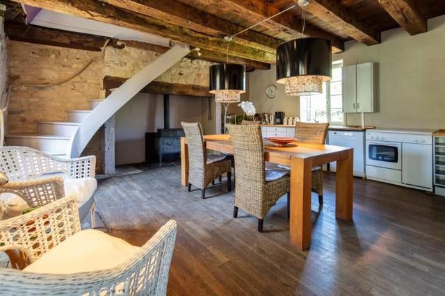 The stand-alone 17th century guest house provides a potential rental opportunity with a living area, kitchen, two bedrooms and bathroom.