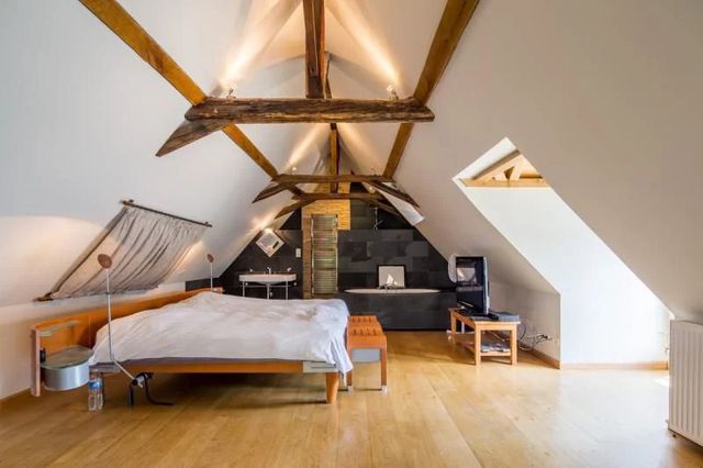 A compromise between the history of the building and modern-day home comforts; kitchen/dining area living with open fireplace, study, studio with kitchenette and bathroom, three bedrooms and two bathrooms. Laundry room.