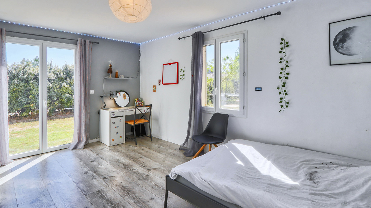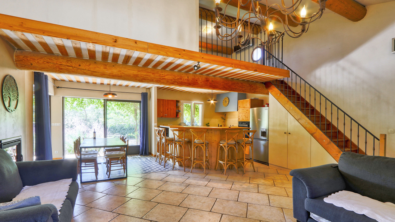 - A large living room with an American kitchen and bay windows, opening onto a large terrace. Under the shaded pergola, you can enjoy life all year round.