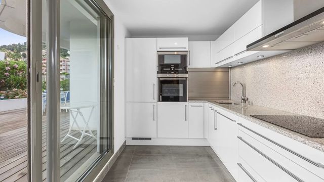 A40116CAA06 - Set in a prestigious seafront residence built in 2010, with caretaker, swimming pool, jacuzzi, sauna, and gym, this exceptional 2-bedroom penthouse combines elegance, comfort, and a prime location in Menton's sought-after Garavan district.
