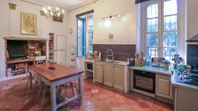 A30422RSI30 - Between the Mediterranean and Cévennes is nestled this magnificent 18th-century castle, offering more than 590 m² of living space. Situated in a very quiet environment with fully grown trees and singing birds, it is close to a town with all amenities. A rare opportunity for an independent and very private part of one wing of the castle is ideal for a primary residence or a second home. The property is very charming and beautifully decorated with real style. The house has been renovated over the years with double-glazed windows and efficient modern electric heaters. Inside, you will be seduced by an extremely warm atmosphere, with large and elegant living rooms and high ceilings. Information about risks to which this property is exposed is available on the Géorisques website : https://www.georisques.gouv.fr