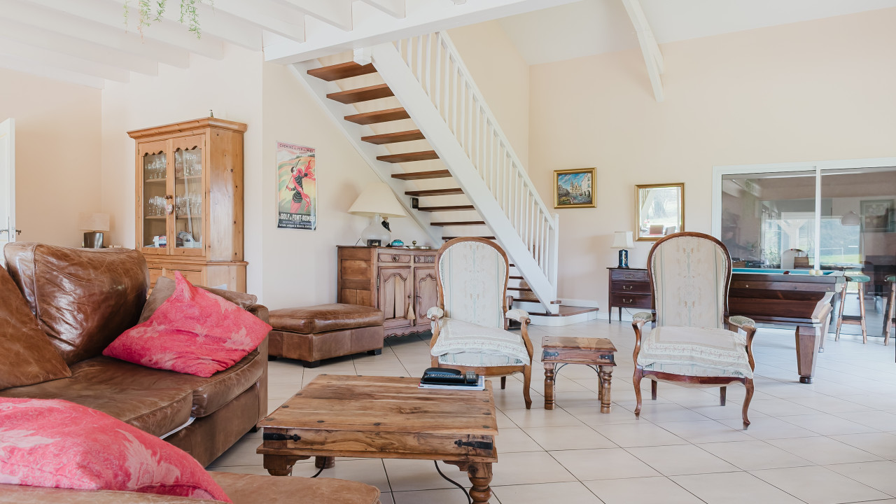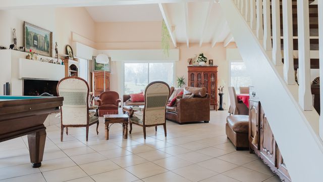 With a large cathedral-style living room of 75m², a total of 6 bedrooms (or 5 bedrooms and a large study), as well as 4 shower rooms and bathrooms, this is an ideal house for a large family, a professional activity or even bed and breakfast.
