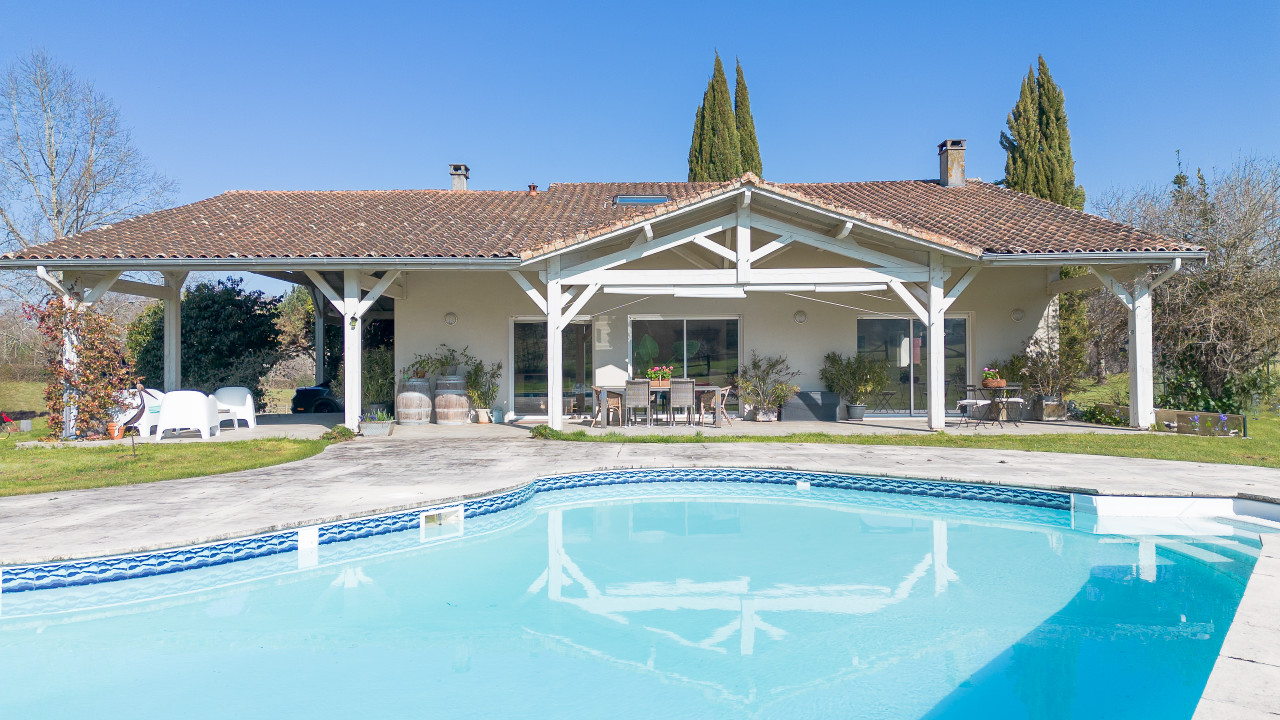 Near Bazas town centre, large property with 375m² family home, with swimming pool, stables and parkl