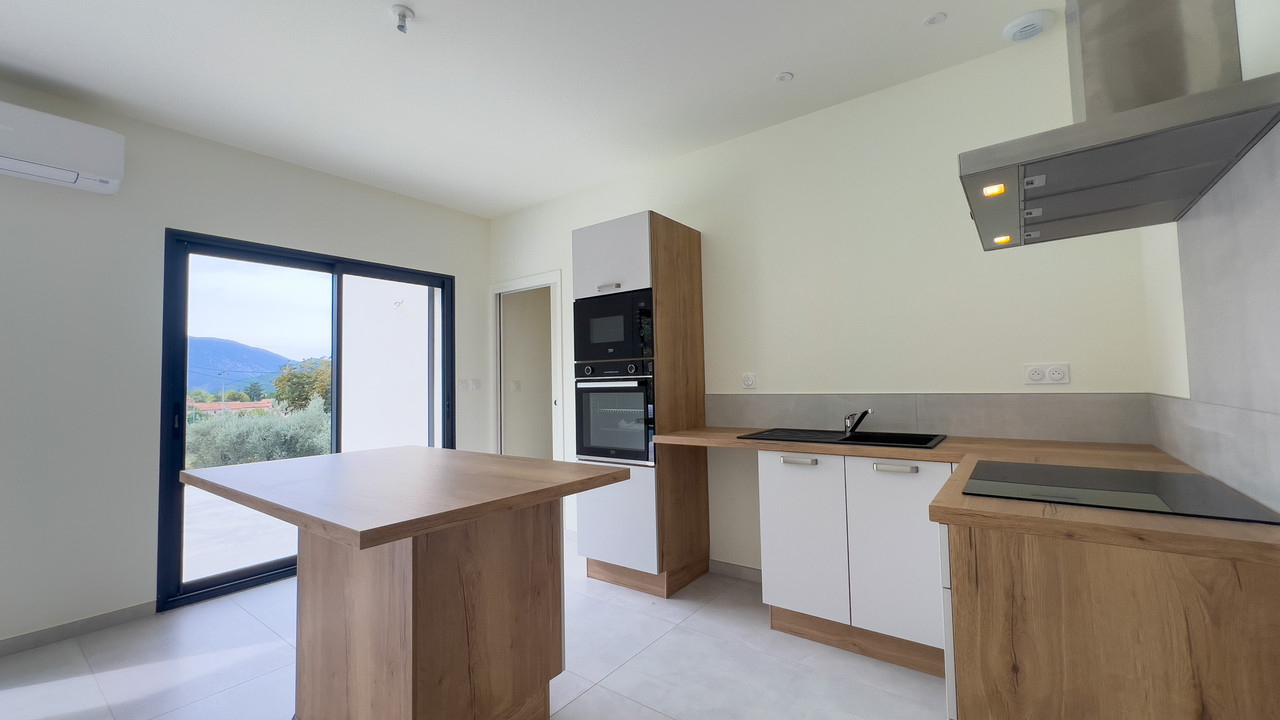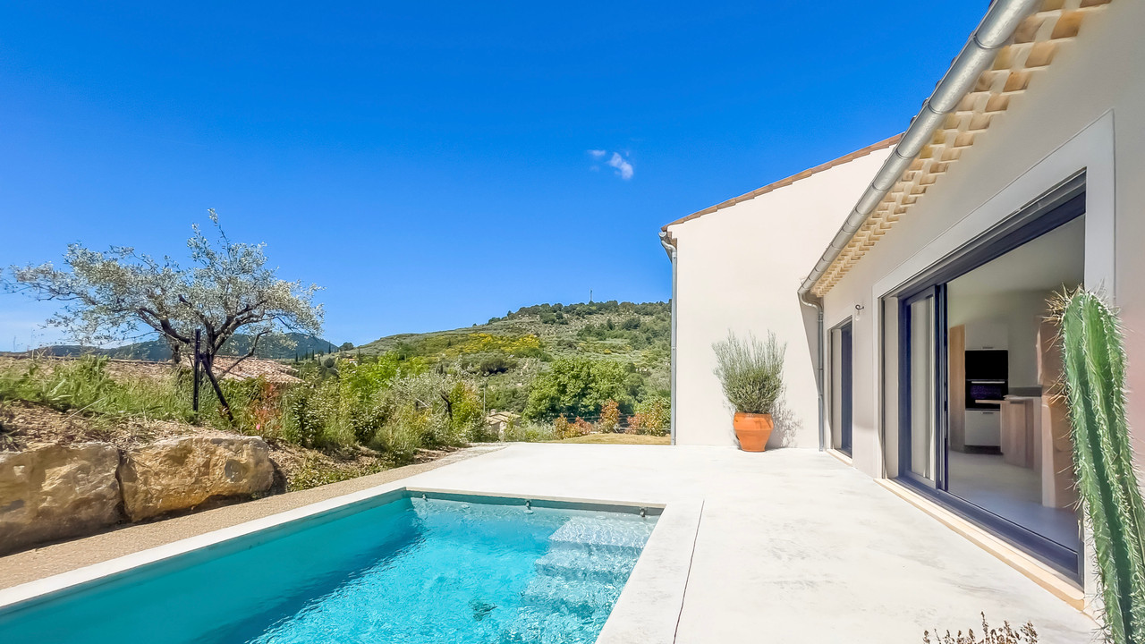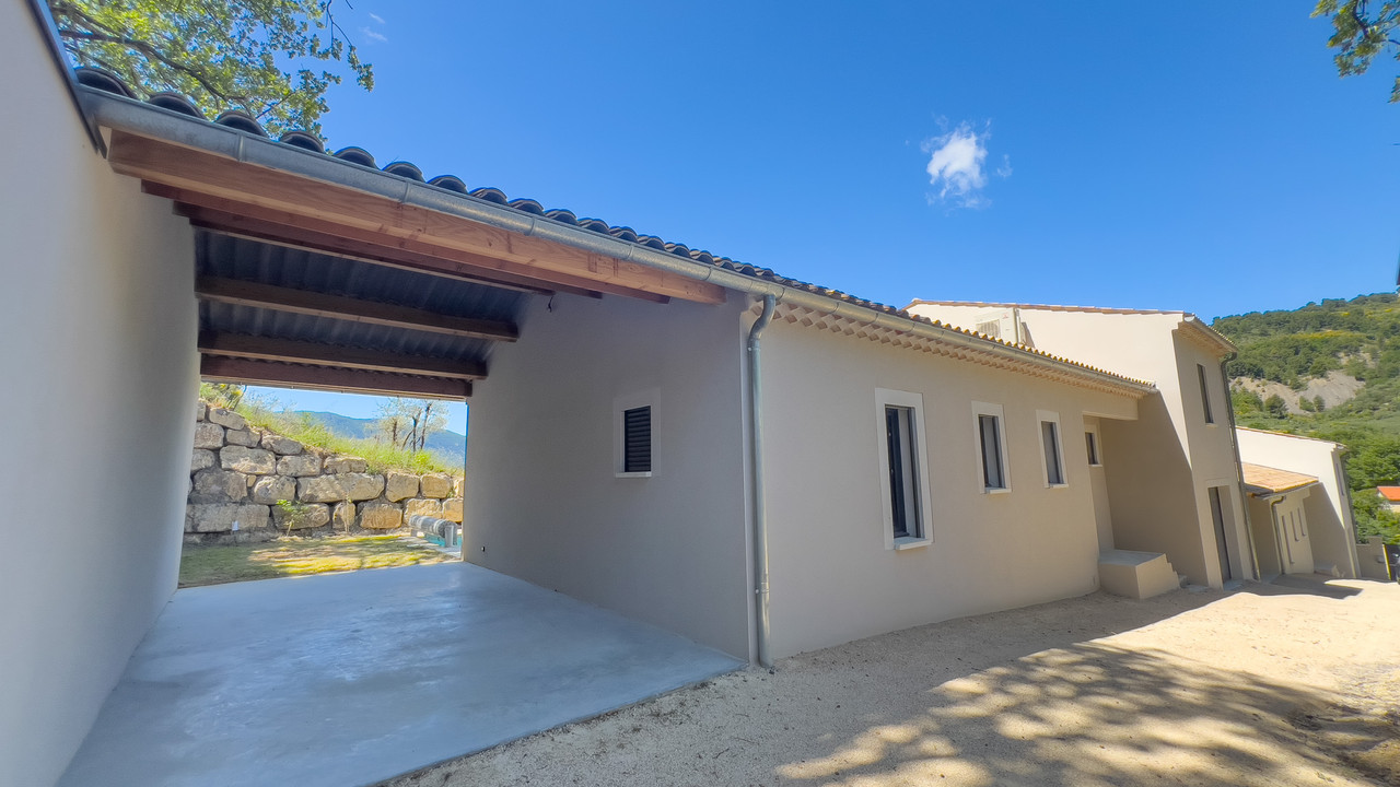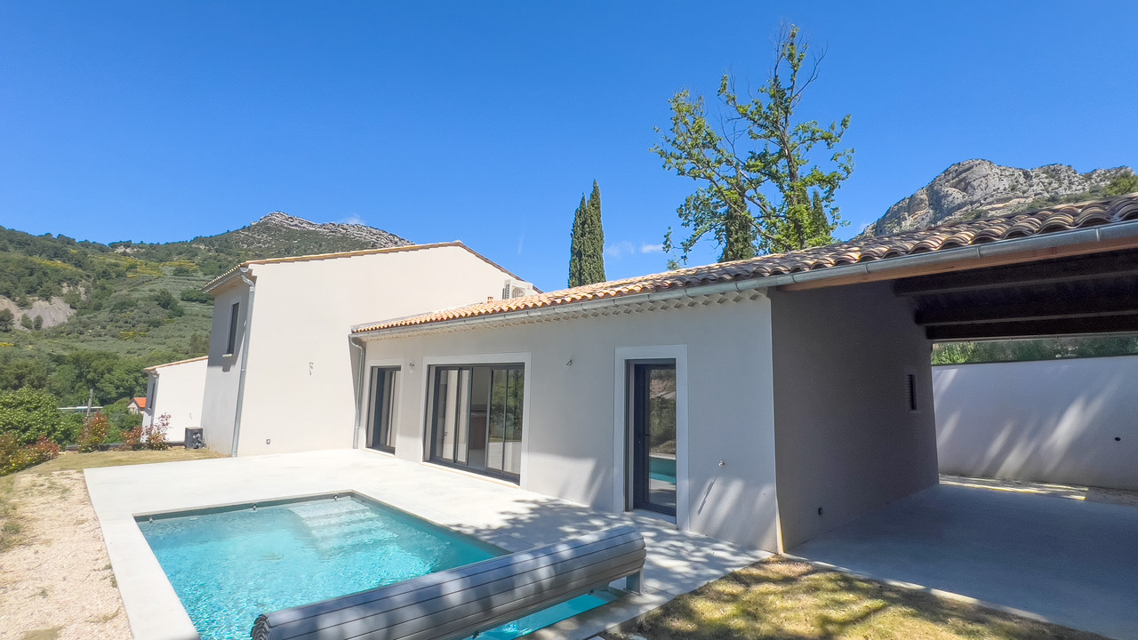 A32496SBD26 - This brand new villa is conveniently located on the outskirts of Buis-les-Baronnies, close to all amenities. The villa has been built with high quality materials, giving it a luxurious feel. Outside there is a pleasant south-facing garden with a swimming pool. The driveway is shared with the neighbouring villa, which is also newly built.