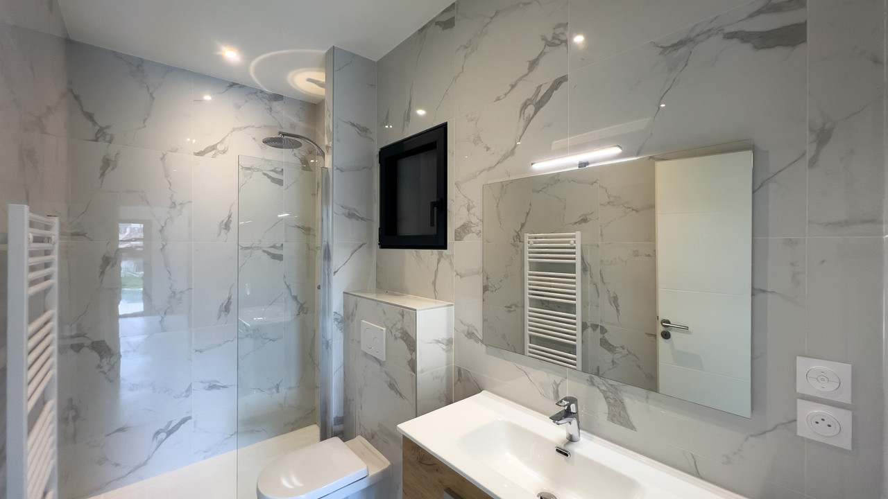 New villa with 857 m2 of land, 4 rooms, 3 bedrooms, garden, swimming pool and garage.