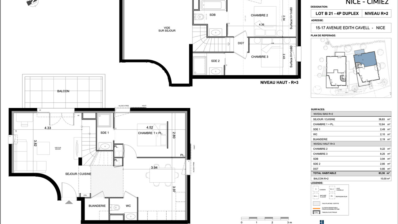 Located on top floor, it includes on the lower level the entrance, living room opening onto the terrace, kitchen with dining area, 1 bedroom with en-suite shower room, toilets, laundry room. On the upper level 2 bedrooms, a bathroom, a shower room, 1 toilets.