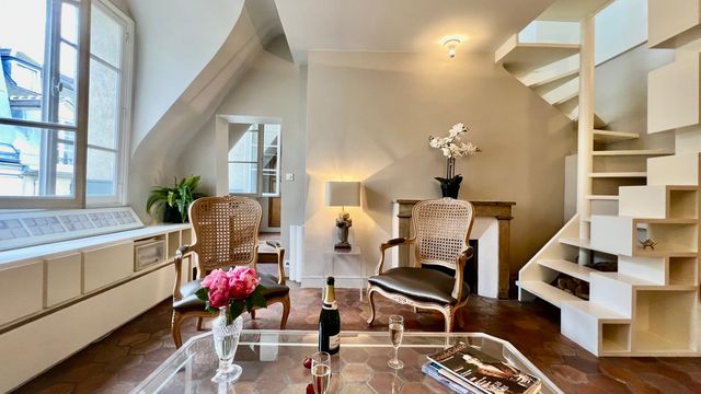 In a 4-storey historic building dating from 1750, part of a small 26-unit co ownership, this property is located on the 3rd and 4th top floors, accessible via the common-area staircase.