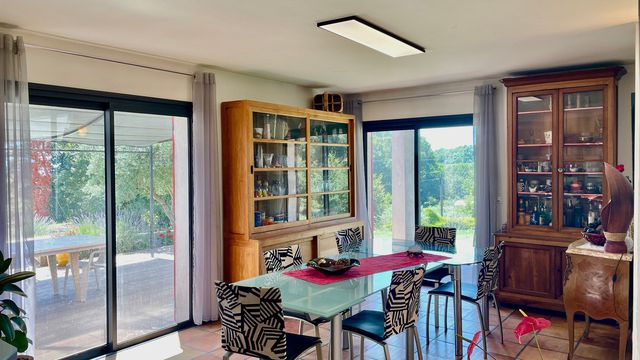 A30742DIP04 - This large villa, built in the eighties by the current owner, an architecte himself, offers enormous space for a large family and a vast garden with a relaxing pool (9 x4 m) in a quiet street, yet very close to the village center. You will enjoy the space around you in this large house (240 sqm), with its large living room with high ceilings and its 6 bedrooms, of which two are on ground floor. The open space kitchen and the large dining area, next to the pool, with splendid views into the garden and beyond enhances the perception that space is seemingly unlimited in this beautiful house. This is an ideal house for those who want to live on ground floor, but who want to have ample space upstairs for children, grand-children and friends.
