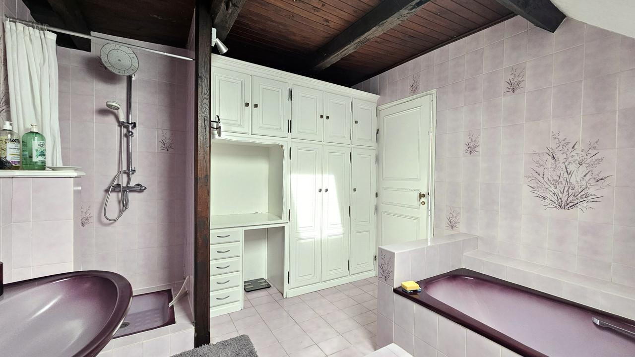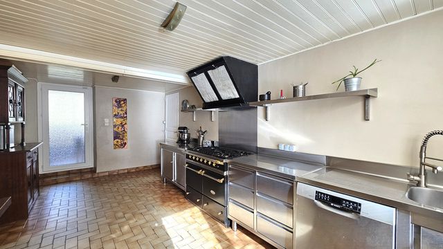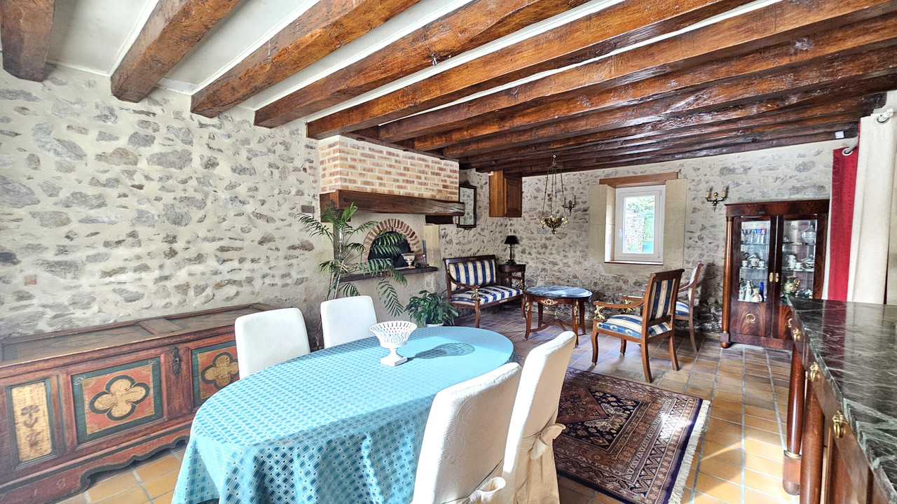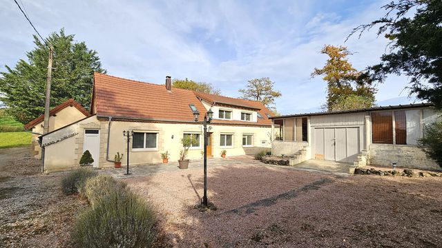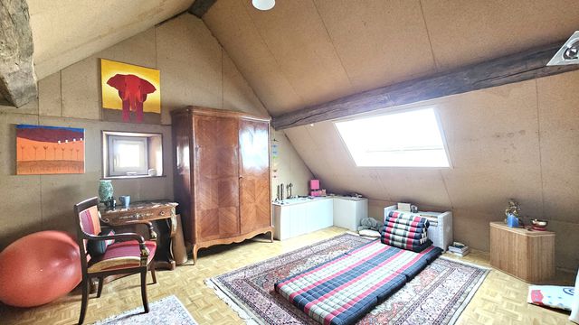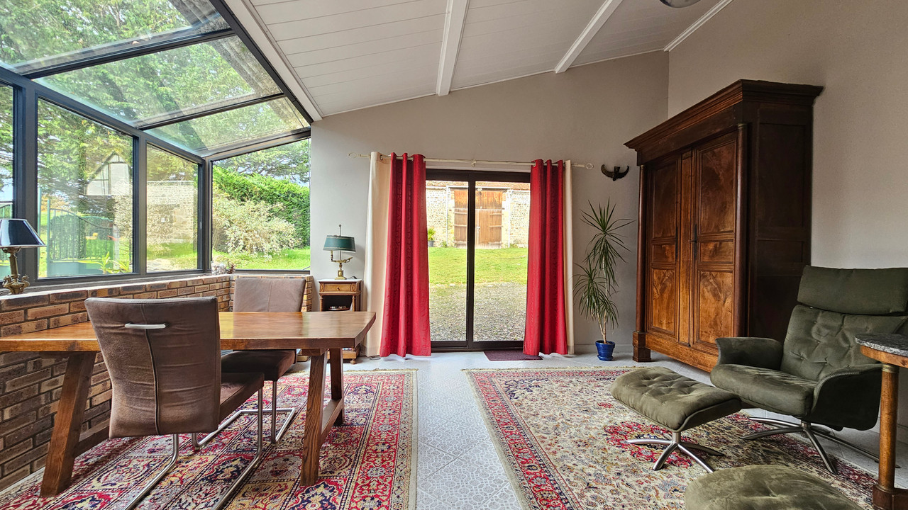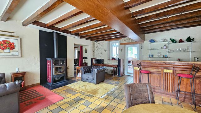 The renovated three-bedroom house offers 166 m² of habitable space. Numerous attached and detached outbuildings provide around 450 m² of convertible potential, arranged around a spacious internal courtyard. An independent living space with kitchen, bedroom, and shower room is already in place.