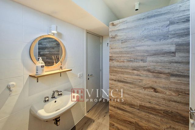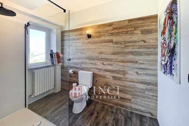 The internal staircase leads to the first floor of about 105 square meters, where there are two very large double bedrooms, a spacious bathroom, a study area, and a laundry room.