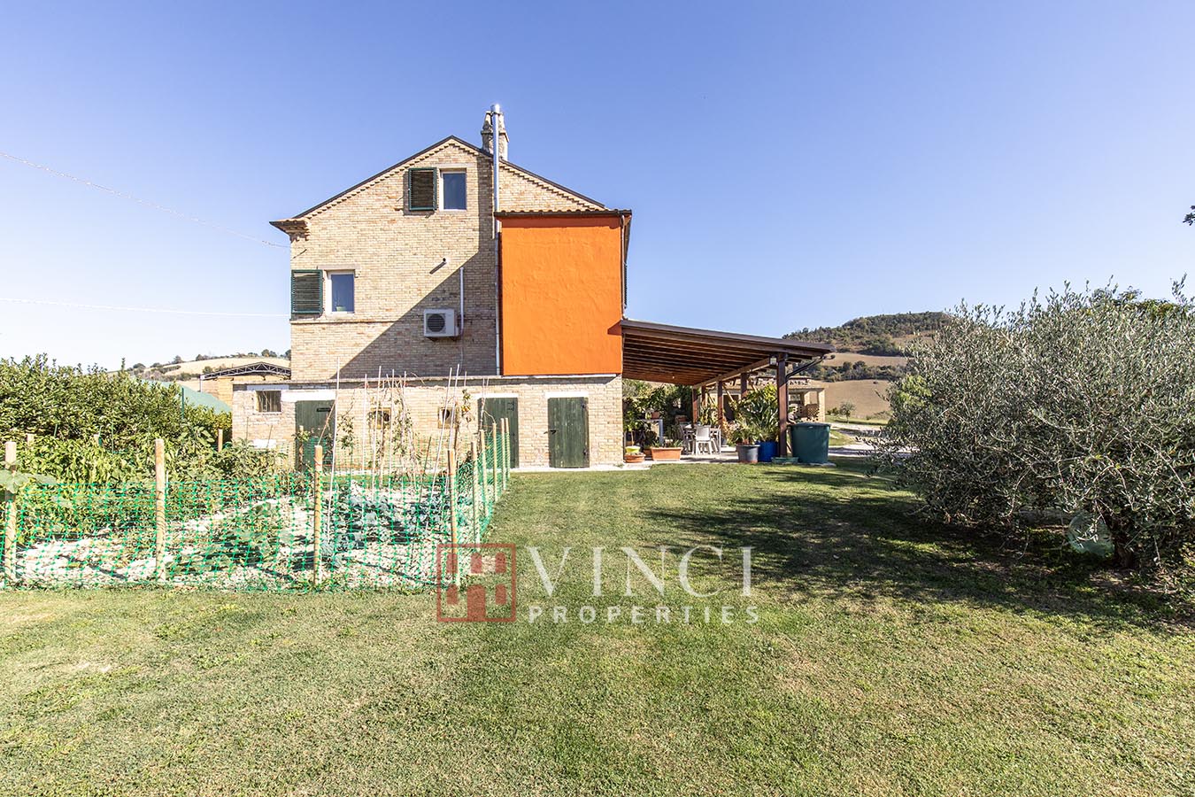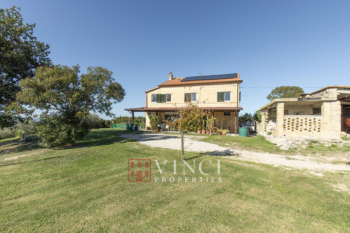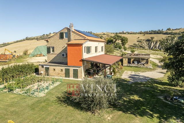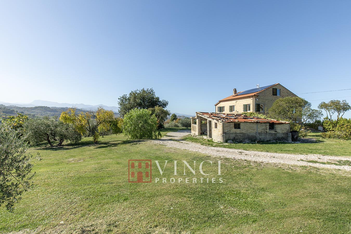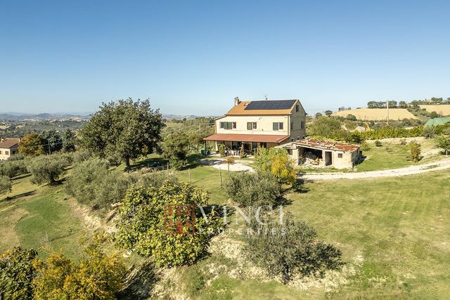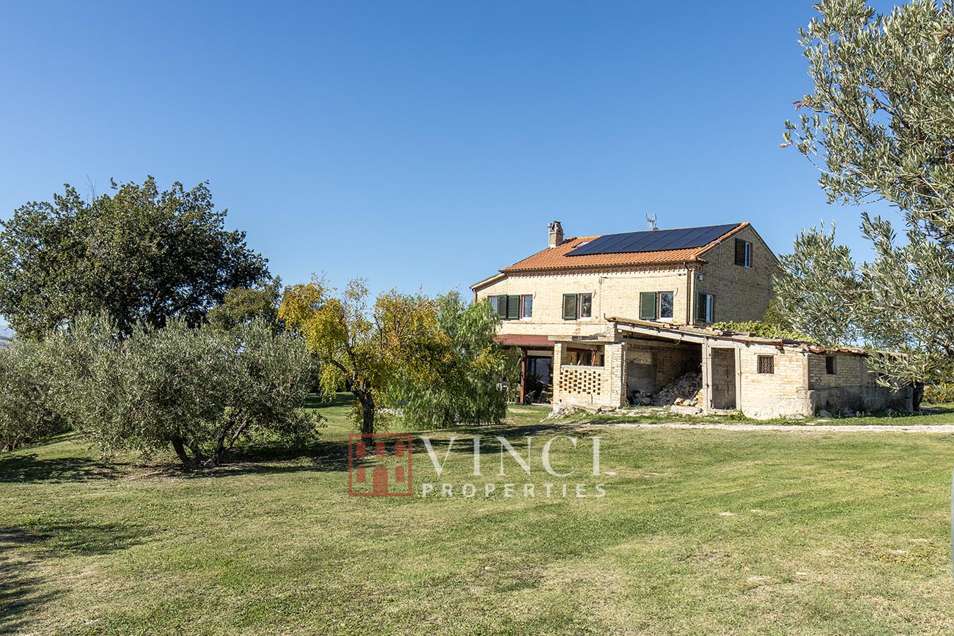 425.000 € ID: 175860Renovated classic Marche farmhouse with walls in bricks, courtyard - olive grove, photovoltaic system (6kw) with storage batteries (8kw), detached outbuilding, agricultural land and amazing view of the Sibillini Mountains!