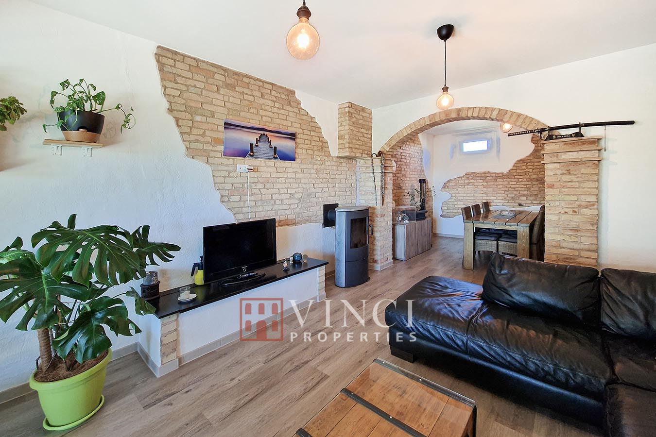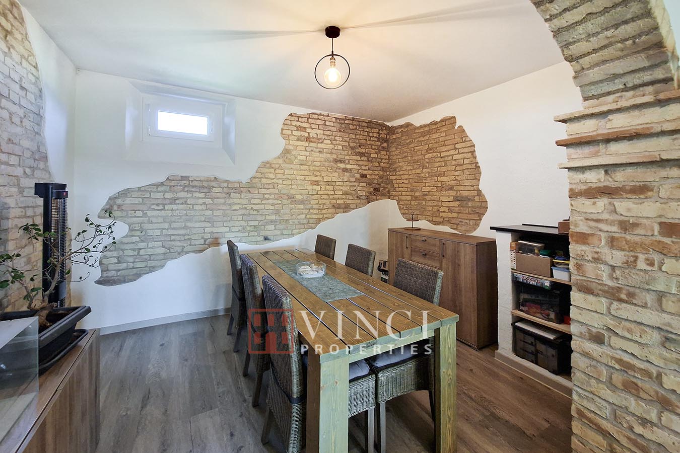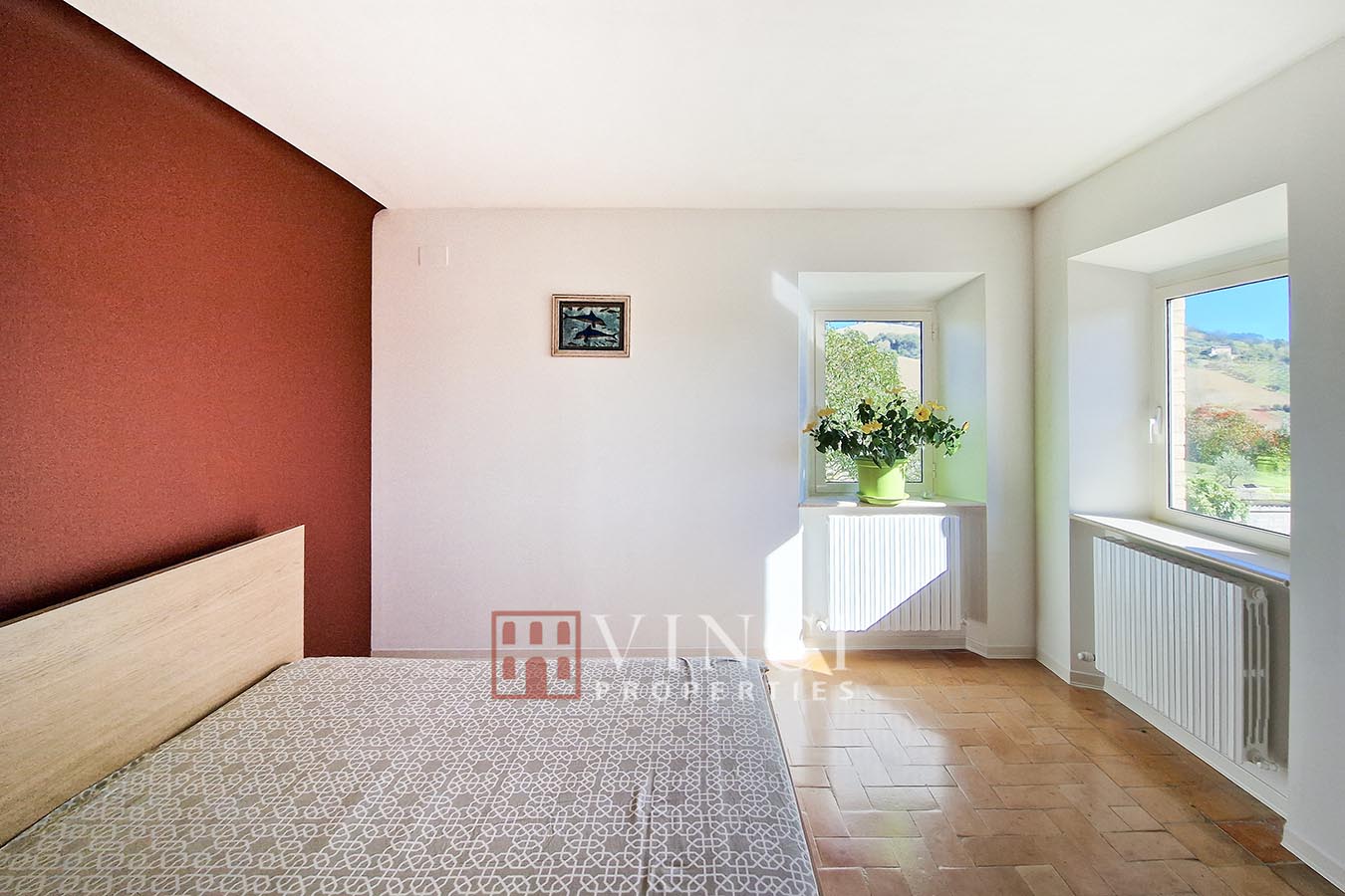 425.000 € ID: 175860Renovated classic Marche farmhouse with walls in bricks, courtyard - olive grove, photovoltaic system (6kw) with storage batteries (8kw), detached outbuilding, agricultural land and amazing view of the Sibillini Mountains!