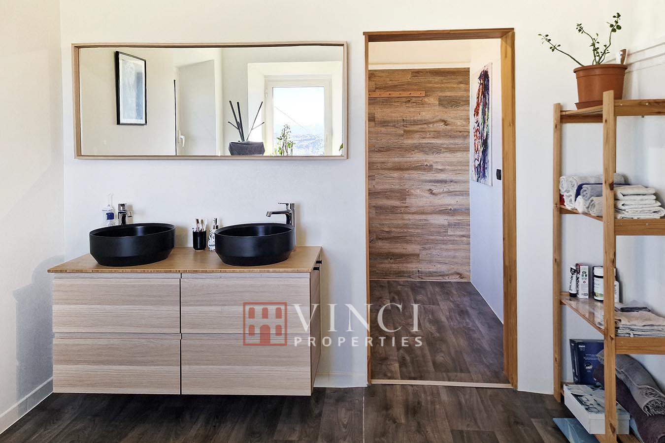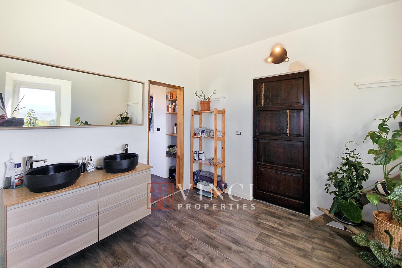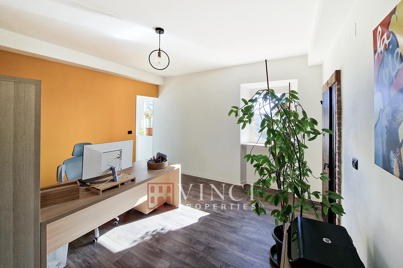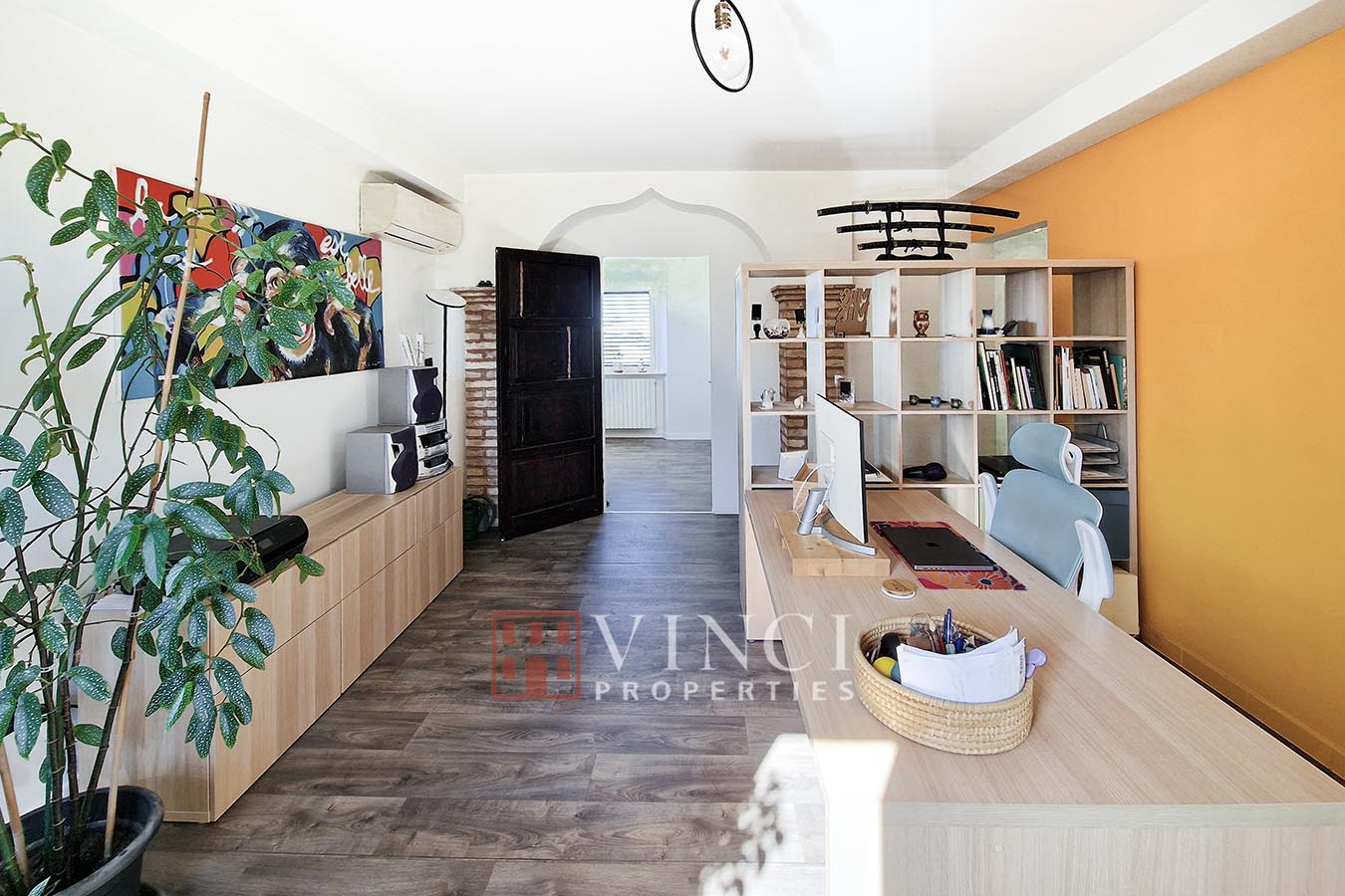 The internal staircase leads to the first floor of about 105 square meters, where there are two very large double bedrooms, a spacious bathroom, a study area, and a laundry room.