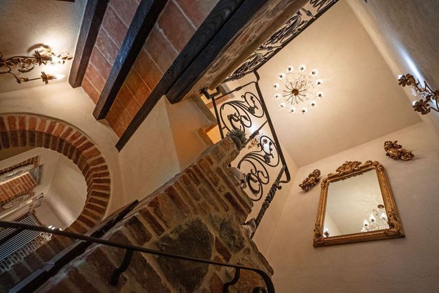 Das Obergeschoss, das über eine Travertintreppe erreichbar ist, besteht aus 3 Schlafzimmern und einem Badezimmer mit Dusche. Das Hauptschlafzimmer verfügt über einen Raum, der als begehbarer Kleiderschrank genutzt wird, und eine exklusive Terrasse mit Blick auf die wunderschöne Landschaft des Valdichiana.