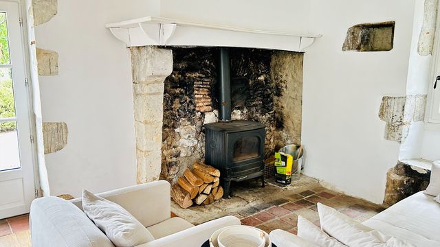 A first living room with a view of the surrounding countryside, a second living room with a fireplace, two bedrooms upstairs and an elegant bathroom with rare and precious marble.