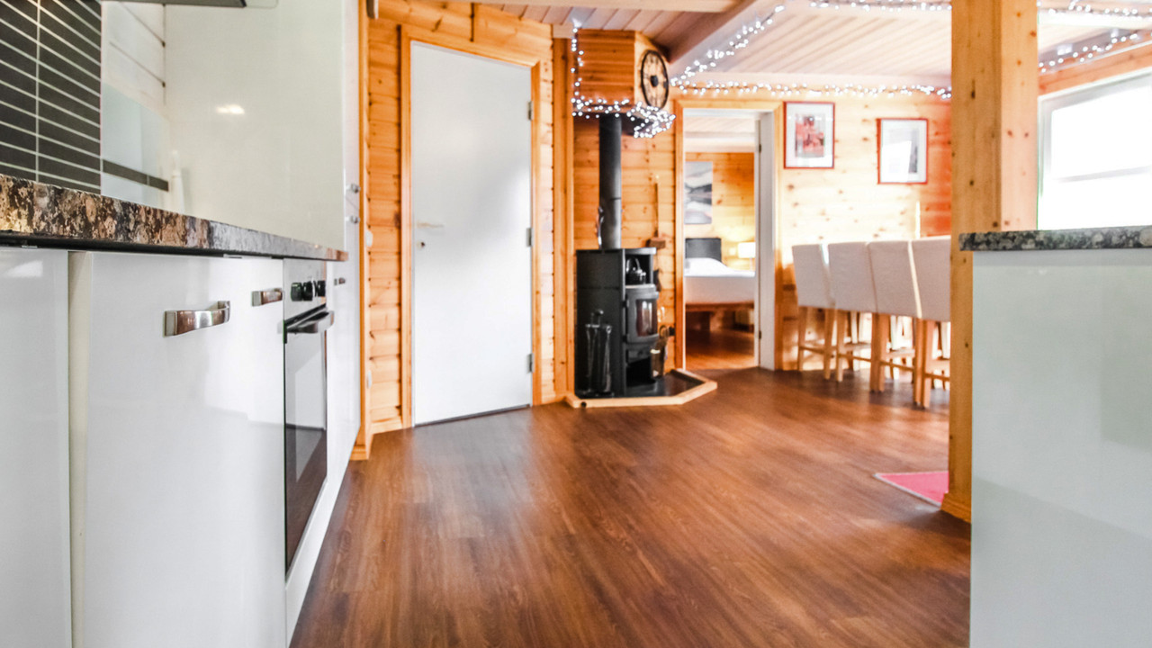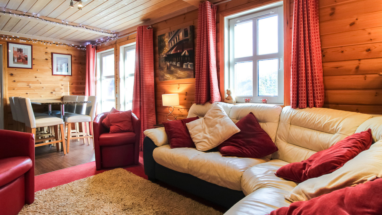 On the ground floor you'll find a modern, fully equipped kitchen which opens up to a comfortable lounge and dining area, complete with a wood-burning stove – ideal for unwinding after a day on the slopes. The living room opens onto the large terrace.